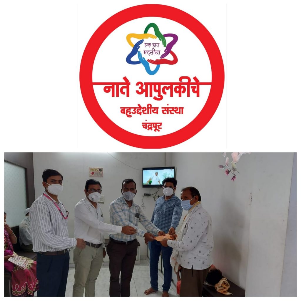 प्रशांतला मदत करण्यासाठी संस्थेचे सचिव प्रा.प्रमोद उरकुडे,उपाध्यक्ष किशन नागरकर, सहसचिव महेश गुंजेकर यांनी प्रामुख्याने डॉ.धगडी यांच्या दवाखान्यात जाऊन प्रशांतचे वडील श्री.वासुदेव गौरकार यांना डॉ.धगडी यांच्या हस्ते प्रस्तुत रकमेचा धनादेश दिला.कोरोनाच्या कठीण काळात देखील नाते आपुलकीचे संस्था आपले सामाजिक कार्य अविरतपणे करत आहे,समाजातील गरजवंत लोकांपर्यंत धावून जात आहे,खऱ्या अर्थाने सामाजिक बांधिलकी जपत आहे असे मनोगत डॉ.धगडी यांनी व्यक्त केले.