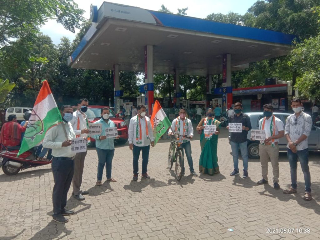 महाराष्ट्र प्रदेश काँग्रेस च्या सुचनेनुसार आणि बाळासाहेब थोरात, शरदभाऊ आहेर यांच्या मार्गदर्शनाखाली सिडको ब्लॉक काँग्रेस तर्फे आज सिडकोत सायकल चे पूजन करून अभिनव आंदोलन करण्यात आले.