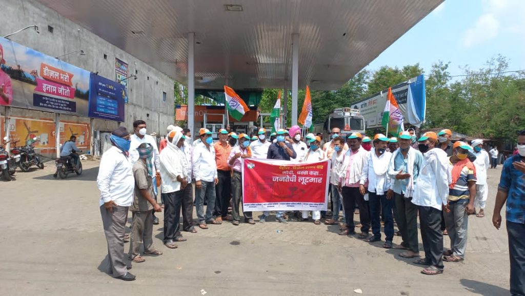 आज प्रदेशाध्यक्ष मा. नानाभाऊ पटोले जी यांच्या मार्गदर्शनाखाली पांढरकवडा येथे आज वाढत्या पेट्रोल व डिझेल दर वाढी विरोधात आंदोलन करण्यात आले. मोदी सरकार पेट्रोल-डिझेलच्या करामधून लाखो कोटी रुपये नफा मिळवून सामान्य जनतेला महागाईच्या खाईत लोटले आहे. अशा आशयाचे फलक लावून आंदोलन कर्त्यांनी घोषणा दिल्या. व पेट्रोल पंपावर येणार्या नागरिकांना फुल देवून पेट्रोल दरवाढीच्या शुभेच्छा दिल्या. व केंद्र सरकारचा निषेध केला आहे..