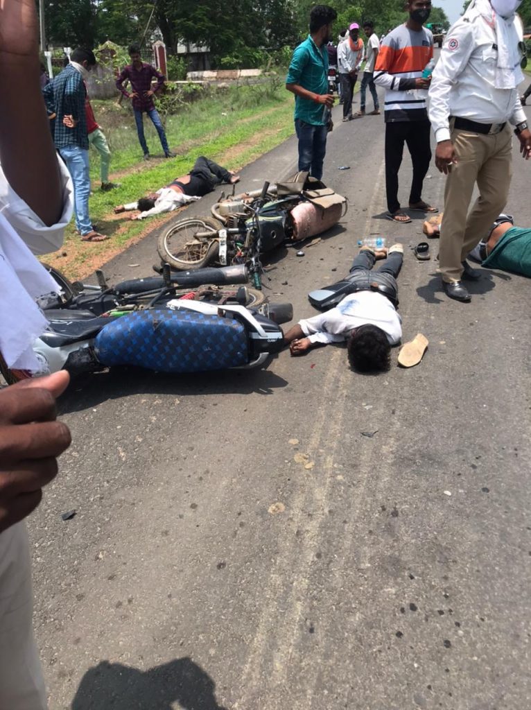 ला 12 वाजता च्या सुमारास चिमुर वरुन एक किमी अंतरावर आर टी एम कॉलेज समोर दुचाकी -दुचाकीची समोरासमोर टक्कर होऊन दोघांचा जागेवरच मृत्यु झाला तर एक गंभीर जखमी आहे.