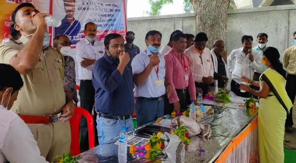 कळंब तालुका प्रहार जनशक्तीपक्षाच्या वतीने आशावर्कर,अंगणवाडी सेविका,आरोग्य मित्र,आरोग्य विभाग अधिकारी कर्मचारी यांना सन्मानपत्र देऊन गौरविण्यात आले तसेच आशा वर्कर सनकोट वाटप करण्यात आले.कळंब तालुका तर्फे प्रहार जनशक्तीपक्षाचे संस्थापक तथा महाराष्ट्र राज्याचे.अकोला जिल्हा.पालकमंत्री . ना.मा.राज्यमंत्री बचुभाऊ कडु यांच्या वाढदिवसानिमित्त कळंब तालुका प्रहारच्या वतीने शहरातील आरोग्य वीभाग जुनी पंचायत समीती येथे तालुक्यातील आशाचा प्रमाणपत्र सनकोट देऊन सत्कार करण्यात आला तसेच शहरातील कोरोना सेटरवर रुग्णांना फळ.दुध.जनरेटर. चीकन जी मदत लागली ती करण्यात आली होती अशा मान्यवर मडंळीचे कोरोना योद्धा म्हणून सन्मानपत्र देऊन सन्मान करण्यात आले.शहरासह ग्रामीण भागात आशा यांनी उत्तम कामगिरी बजावली यावेळी तालुक्यातील परिस्थिती भयावह होती याही परिस्थितीत वर आशा.आरोग्य वीभाग पोलीस महसूल पंचायत वीभागाचे कर्मचारी अधिकारी याचा कोरोना योद्धा म्हणून सत्कार करुन गौरविण्यात आले होते कार्यक्रमाचे अध्यक्ष कळंब तहसीलदार डॉ सुनील चव्हाण. आरोग्य अधिकारी डॉ वीजय आकोलकर पोलीस नीरीक्षक अजीत राठोड. गटविकास अधिकारी मडावी.बासुरीवालै बाबा टस्ट अध्यक्ष नसीम काझी माजी नगरसेवक अजु सामाजिक कार्यकर्ते राजु सारडे.प्रहार उपजील्हा प्रमुख सजय दुरबुडे.प्रमोद कातरकर.दिनेश करलुके,जावेद सैयद,यांच्या उपस्थितीत कोरोना योद्धा याचा सत्कार केला. कार्यक्रमाचे सूत्रसंचालन प्रहार तालुका प्रमुख दिलीप डवरे यांनी केली तर उपस्थित आभार प्रदर्शन सजय दुरबुडे यांनी केले. यावेळी अनीकेत अढाल राजु जैयस्वाल.नीलेश राठोड. सजय गुरनुले.सह सर्व पद्धधिकारी व कार्यकर्ते उपस्थित होते