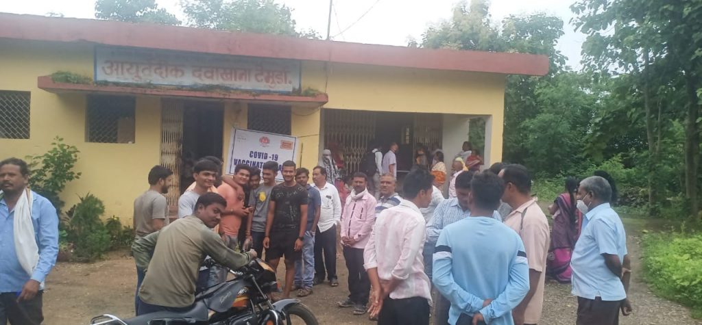 आयुर्वेदिक दवाखाना टेमूर्डा येथे कोवीड 19 लसीकरण केंद्रावर कोरोना लसीचा दुसरा डोज देणें सुरू आहे .परंतु पहील्या लसीच्या डोज साठी युवा वर्ग खूप गर्दी करत आहे. व कोवीड 19 च्या नियमांची पायमल्ली होताना दिसतआहे.मास्क चा देखील वापर करित नसल्याने कोरोना ची तिसरी लाट यायला वेळ लागणार नाही हेही तितकेच खरे आहे.प्रशासनाकडून मास्क चा वापर करा तसेच सार्वजनिक ठिकाणी गर्दी करू नये असे आवाहन ग्राम पंचायत प्रशासनाकडून केले जात आहे.
