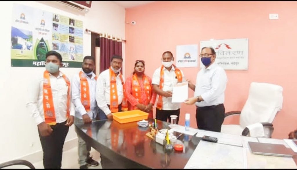 कोरोना काळात वीज ग्राहकांना सवलत देण्यापेक्षा उलट 18 ते 20 टक्क्यांनी वीज दारात वाढ करून आता वीज ग्राहकांचे वीज कनेक्शन तोडल्या जात असल्याने ते त्वरित थांबवून वीज ग्राहकांना तीन ते चार हप्ते पडून वीज बिल भरण्याची सवलत देण्यात यावी अन्यथा महाराष्ट्र नवनिर्माण सेनेकडुन मनसे स्टाईल आंदोलन करण्यात येईल असा इशारा महावितरण कंपनीचे मुख्य अभियंता देशपांडे यांना दिलेल्या निवेदनातून मनसे जिल्हा अध्यक्ष दिलीप रामेडवार, जिल्हा उपाध्यक्ष राजू कुकडे यांनी दिला यावेळी महिला जिल्हाध्यक्षा सुनीता गायकवाड. जिल्हा सचिव किशोर मडगुलवार. तालुका अध्यक्ष प्रकाश नागरकर.शहर संघटक मनोज तांबेकर. तुषार येरमे, अर्चना आमटे, वर्षाताई बोंगले, महेश गडपेलीवार, शैलेश सदालावार इत्यादी महाराष्ट्र सैनिक उपस्थित होते.