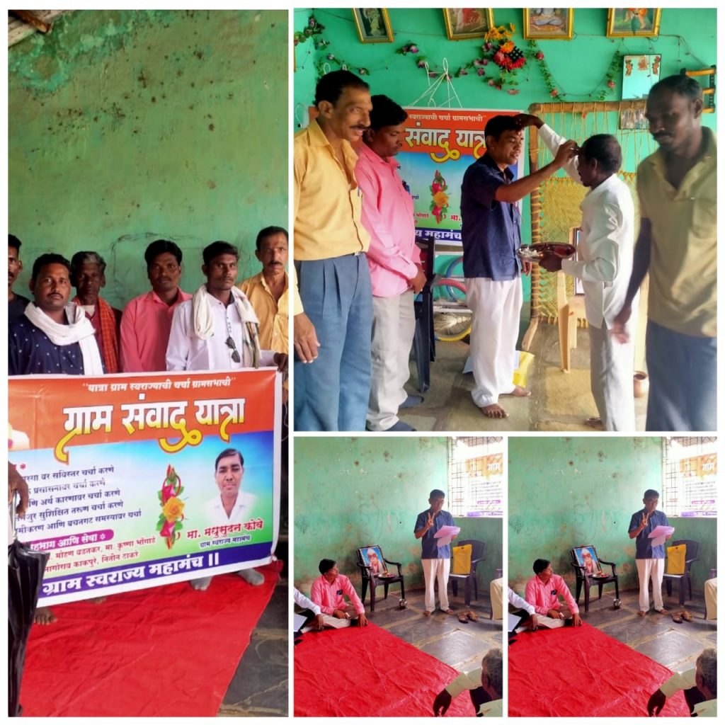 ग्राम संवाद यात्रा चे मुख्य संयोजक मा.मधुसुदनजी कोवे गुरुजी अध्यक्ष ग्राम स्वराज्य महामंच यांनी गावातील लोकांना मार्गदर्शन करताना सांगितले की गावातील लोकांच्या समस्या ऐकून घेण्यासाठी ग्रामसभा हे सर्वात मोठे चर्चा करण्यासाठी व्यासपीठ आहे म्हणून लोक प्रतिनिधी नी गावात जाऊन ग्रामसभा घेतली पाहिजे आणि लोकांच्या समस्या ऐकून घेतल्या पाहिजेत