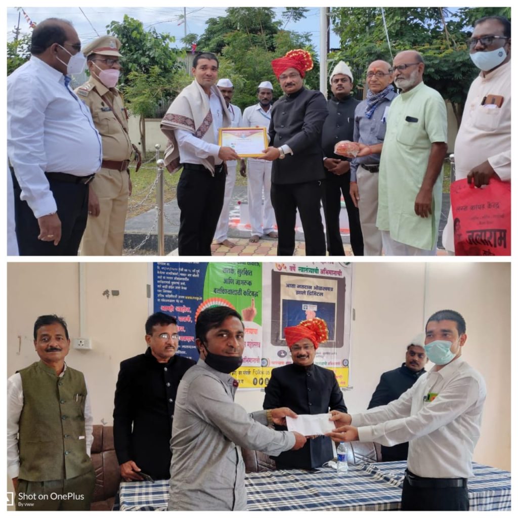 भारतीय स्वातंत्र दिनाचा 74वा वर्धापन दिन शासकींय कार्यक्रमा मधे तालुका उपविभागीय अधिकारी शैलेश जी काळे माननीय तहसीलदार डॉ रवींद्र जी कानडजे ,आणी तालुका संघचालक श्रीं भूपत भाई कारीयां श्रीं अंकुशराव जी रामगडे आणी इतर मान्यवर यांच्या उपस्थिती मधे धनजी भाई कारीयां स्म्रुती पुरस्कार डॉ कुणालभाऊ बाबारावजी भोयर याना प्रदान करण्यात आला त्याच प्रमाणे शासना तर्फे कोरोना योध्या म्हणुन सन्मानपत्र देण्यात आले.