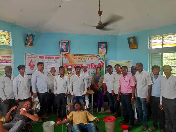 १५ ऑगस्टच्या निमीत्ताने ७५ व्या स्वातंत्र्यदिनी काचनगांव येथे युवा मित्र परिवारा कडुन रक्तदान शिबिराचे आयोजन केले होते.