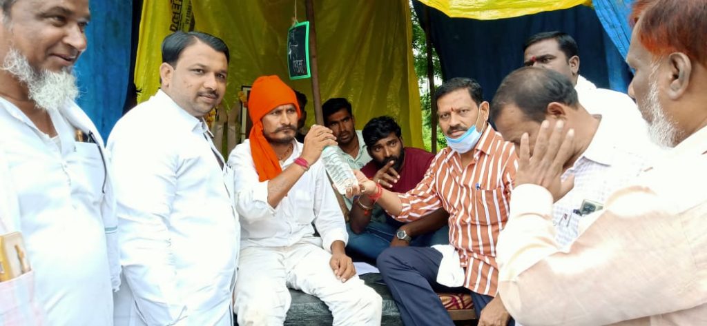 चौथ्या दिवशी आ माधवराव पाटील जवळगावकर यांच्या उपस्थितीत उपोषण मागे घेण्यात आले असून, सदरील अतिक्रमित विहीर मोकळी करून बांधकाम करुन दिले जाईल असे नगर पंचायतीचे पत्रानंतर मराठा साम्राज्य संघानं उपोषण सोडल आहे .