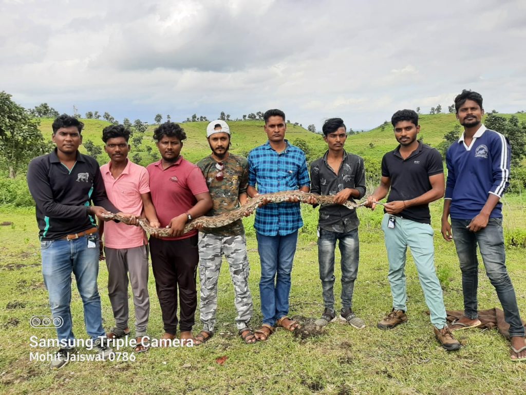 राळेगाव तालुक्या मध्ये प्राणी मित्र .T1 अवनी वाइल्डलाईफ प्रोटेकशन क्लब. या नावाने संस्था काही काळापासून कार्यरत आहेत. नेहमी प्रमाणेच त्यांना असाच एक फोन मोरेश्वर कुळसंगे राहणार चाहांद यांचा घरामध्ये साप दिसल्याची त्यांनी माहिती जेष्ठ सर्पमित्र विजयभाऊ सूर्यवंशी , उपाध्यक्ष आशिषजी येरकाडे , सचिव नयनजी कोकाटे यांना दिली.क्षणाचाही विलंब न करता वडकी येथील T1 अवनी वाइल्ड लाईफ प्रोटेकशन क्लब राळेगाव. मधील सदस्य शुभम जोगे , शिवम वाघाडे , गौरव जवादे यांनी तिथे जाऊन पाहणी केली असता. तिथे त्यांना अजगर या जातीचा साप घरामध्ये दिसून आला. सापाची लांबी अंदाजे 6 ते 7 फूट असून 9 ते 10 किलो त्याचे वजन आहे त्याला अतिशय चपळाईने आपल्या ताब्यात घेतले व तेथील उपस्थित व्यक्तींना त्या सापाची माहिती दिली.T1 अवणी वाइल्डलाईफ प्रोटेकशन क्लब राळेगाव मधील सदस्य वृषभ भोयर , मोहित जयस्वाल व वनअधिकाऱ्याचा समक्ष त्या अजगराला सोडण्यात आले.