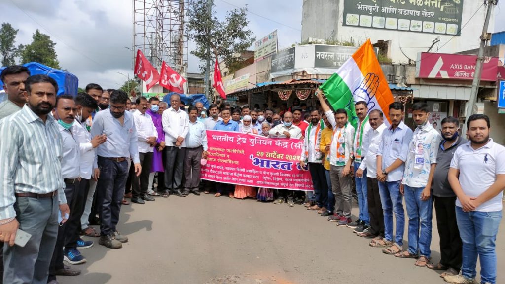 केंद्र सरकारने लागू केलेल्या शेतकरी कायद्या विरोधात दिल्ली च्या सिमेवर सुरु असलेल्या शेतकरी आंदोलनाची दखल केंद्रातील मोदी सरकार घेत नसून त्या आंदोलनाला पाठिंबा देण्यासाठी भारत बंद ची हाक देण्यात आली होती.