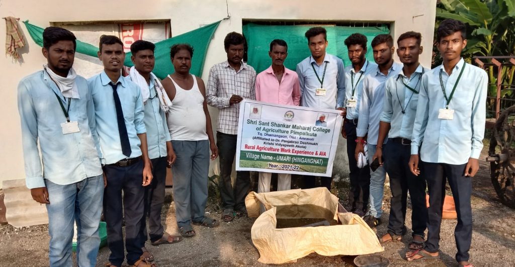 श्री संत शंकर महाराज कृषी महाविद्यालय पिंपळखुटा ता. धामणगाव (रेल्वे), जि. अमरावती येथील चतुर्थ वर्षातील विद्यार्थि अजय नेवारे, रोहन राडे, पंकज वैद्य, भूषण तडस, अविनाश तिखट, गणेश विहिरकर, प्रज्वल ठाकरे, व राहुल पाटील यांनी हिंगणघाट तालुक्यातील शेतकऱ्यांना अझोला या शेवाळाविषयी माहिती दिली. सदर कार्यक्रम कृषी ग्रामीण कार्यानुभव कार्यक्रमांतर्गत (RAWE) करण्यात आला, यावेळी महाविद्यालयाचे कर्तव्यदक्ष प्राचार्य डॉ. सी. यू. पाटील सर, उपप्राचार्य डॉ. एस. के. नायक सर, कार्यक्रमाचे अधिकारी श्री. पी. व्ही. चीमोटे सर, विषयतज्ञ कु. लांडे मॅडम, व इतर प्राध्यापकवृंद यांच्या मार्गदर्शनाखाली कृषीविद्यार्थि विविध उपक्रम राबवत आहेत. यावेळी हिंगणघाट येथील शेतकऱ्यांना अझोला शेतीचे महत्व, फायदे, व अझोला शेतीचे प्रात्यक्षिक करून दाखवले.