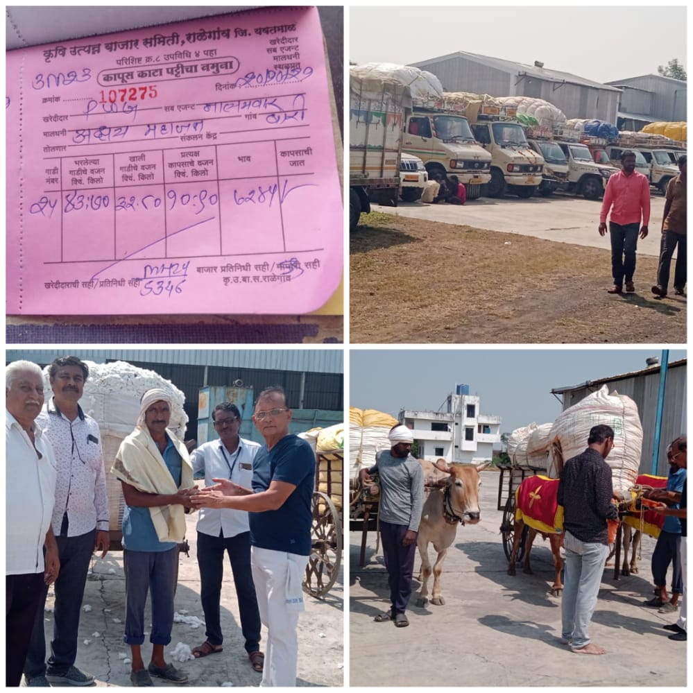 राळेगाव तालुक्यातील खैरे 20ऑक्टोबरला रिशी जिनिंग मध्ये कापूस करण्याचा शुभारंभ करण्यात आला. प्रकाश वाईट गोल्ड प्रा. लि. हिंगणघाट यांनी शेतकरी संजय जगधरे व हरीदासजी हरबडे यांच्या बैलबंडी चे पूजन करून मोठी 31 वाहने व दोन बैलबंडी यांना सरसकट 7245 रुपये भाव दिला. या कापूस खरेदीच्या शुभारंभ प्रसंगी कृषी उत्पन्न बाजार समितीचे कर्तव्यदक्ष सभापती प्रफुलभाऊ मानकर, रविभाऊ निवल, महेंद्रजी बोथरा, कापूस खरेदीदार ओमप्रकाश डालिया, प्रणय डालिया, रिशी जिनिंग चे मालक कीर्ती शेठ, कृषी उत्पन्न बाजार समितीची केंद्रप्रमुख कोवे साहेब , मापारी बंडोजी नागपुरे, कापूस अडते सुरेश शेठ झामड, धनराजजी झामड , आनंदरावजी बोंदरे, विनोदराव भन्साली, अनीजी झाडे, सुनीलराव जयस्वाल, विवेकराव भेदुरकर, गजाननराव ठाकरे पांडुरंगजी बोडे, व इतर कापूस अडते व शेतकरी उपस्थित होते व शेतकरी बांधव असाच वाडी चा भाव राहो अशी अपेक्षा करत आहे.