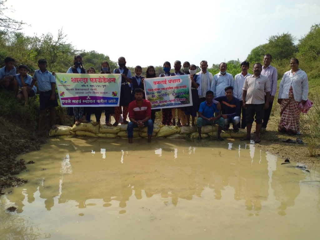 शारदा फाउंडेशन रजि. नंबर महा ८५५ पुणे व जिल्हा परिषद उच्च प्राथमिक शाळा परसोडाच्या वतीने वनराई बंधारा बांधण्याचे नियोजन शारदा फाऊंडेशनचे अध्यक्ष मा श्री निकेश आमने-पाटील. व शाळेचे मुख्याध्यापक मा श्री.विजय उमरे यांच्या नेतृत्वाखाली शारदा फाउंडेशनचे उपाध्यक्ष श्री शुभम आमने यांच्या मार्गदर्शनाखाली करण्यात आले. फाउंडेशन चे सर्व सदस्य तथा शाळेतील सर्व शिक्षक यांनी आपली तत्परता दाखविली. शारदा फाउंडेशन व विद्यार्थ्यांच्या सहकार्याने बंधारा बांधण्याचे ठरविले. आणि नुकतेच परसोडा या गावातील नियमित नाल्यावर शारदा फाउंडेशन व शालेय विद्यार्थ्यांच्या वतीने श्रमदानातून वनराई बंधारा बांधण्यात आला. यावेळी शारदा फाउंडेशनचे उपाध्यक्ष शुभम आमने यांनी शालेय विद्यार्थ्यांच्या गमतीजमतीत वनराई बंधाऱ्याच्या महत्व पटवून देऊन विद्यार्थ्यांचा व फाउंडेशनच्या सर्व सदस्यांचे उत्साह वाढविण्याचे काम केले. यावेळी शारदा फाउंडेशनचे सदस्य शंकर गारघाटे, आशिष आवारी, मयूर रामटेके, कौशल कुमरे, महेंद्र तामगाडगे, निखिल गारघाटे. तसेच जि. प. उच्च प्राथमिक शाळा परसोडा चे मुख्यध्यापक शिक्षक वृंद मा. मारुती सिडाम, मा. बंडू बडवे, सौ.कमल येरणे, शाळा व्यवस्थापन समिती चे अध्यक्ष निलेश कुरेकर सदस्य शंकर पावडे. व सर्व फाऊंडेशनचे सदस्य तथा शालेय विद्यार्थ्यांच्या श्रमदानातून वनराई बंधारा यशस्वी पने बांधण्यात आले.