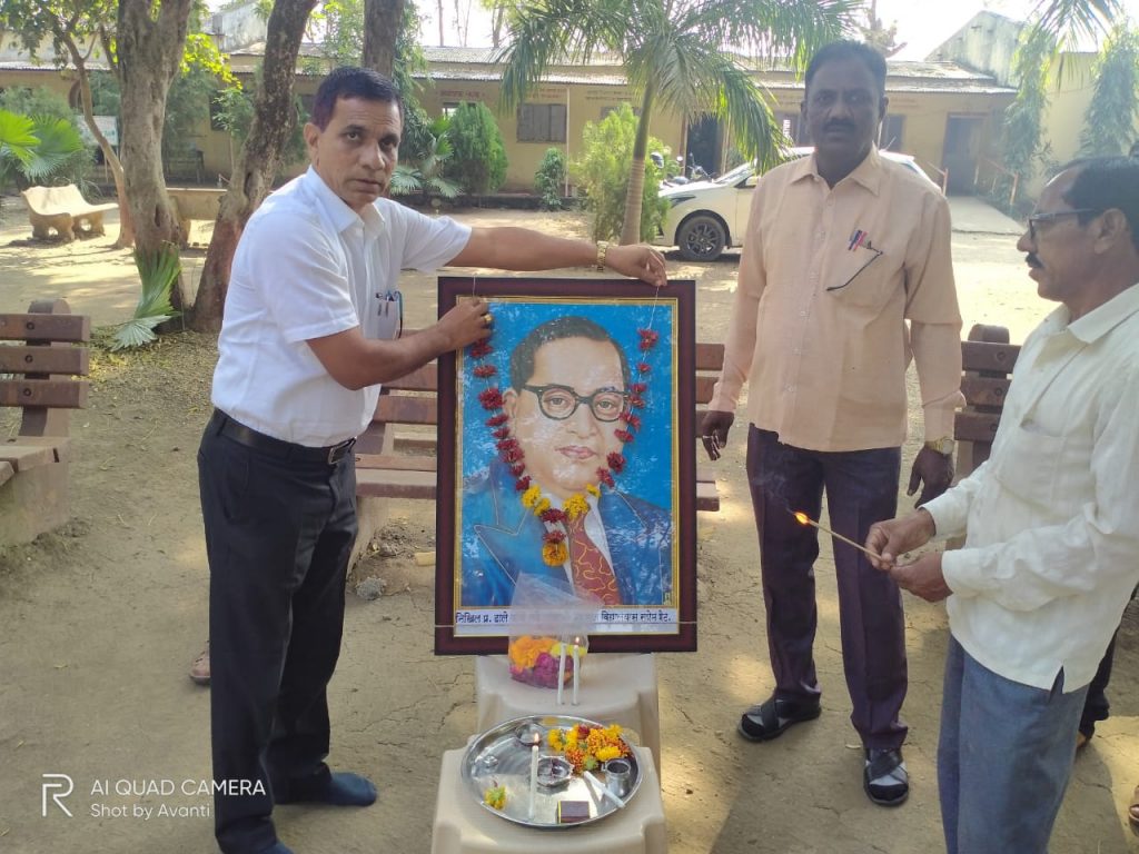 राळेगाव तालुक्यातील झाडगाव येथील श्री लखाजी महाराज विद्यालय व कनिष्ठ महाविद्यालयात आज दिनांक ६/१२/२०२१ रोजी डॉं. बाबासाहेब आंबेडकर महापरिनिर्वाण दिन साजरा करण्यात आला.या कार्यक्रमात सर्व प्रथम विद्यालयाचे प्राचार्य विलास निमरड सर यांनी प्रतिमेचे पुजन करून कार्यक्रमाला सुरवात करण्यात आली त्यानंतर सर्व शिक्षक शिक्षकेत्तर कर्मचारी बंधू भगिनींनी सुद्धा प्रतिमेचे पुजन केले.या कार्यक्रमाला विद्यालयाचे जेष्ठ शिक्षक रमेश टेभेंकर सर,श्रावनसिंग वडते सर,दिगांबर बातुलवार सर रंजय चौधरी सर,राजेश भोयर सर, मोहन बोरकर सर,विशाल मस्के सर,सौ कुंदा काळे मँडम,सौ वंदना वाढोनकर मँडम, सौ स्वाती नेताम मँडम,कु वैशाली सातारकर मँडम,व शिक्षकेत्तर कर्मचारी वाल्मिक कोल्हे,बाबूलाल येसंबरे, विनोद शेलवटे उपस्थित होते.