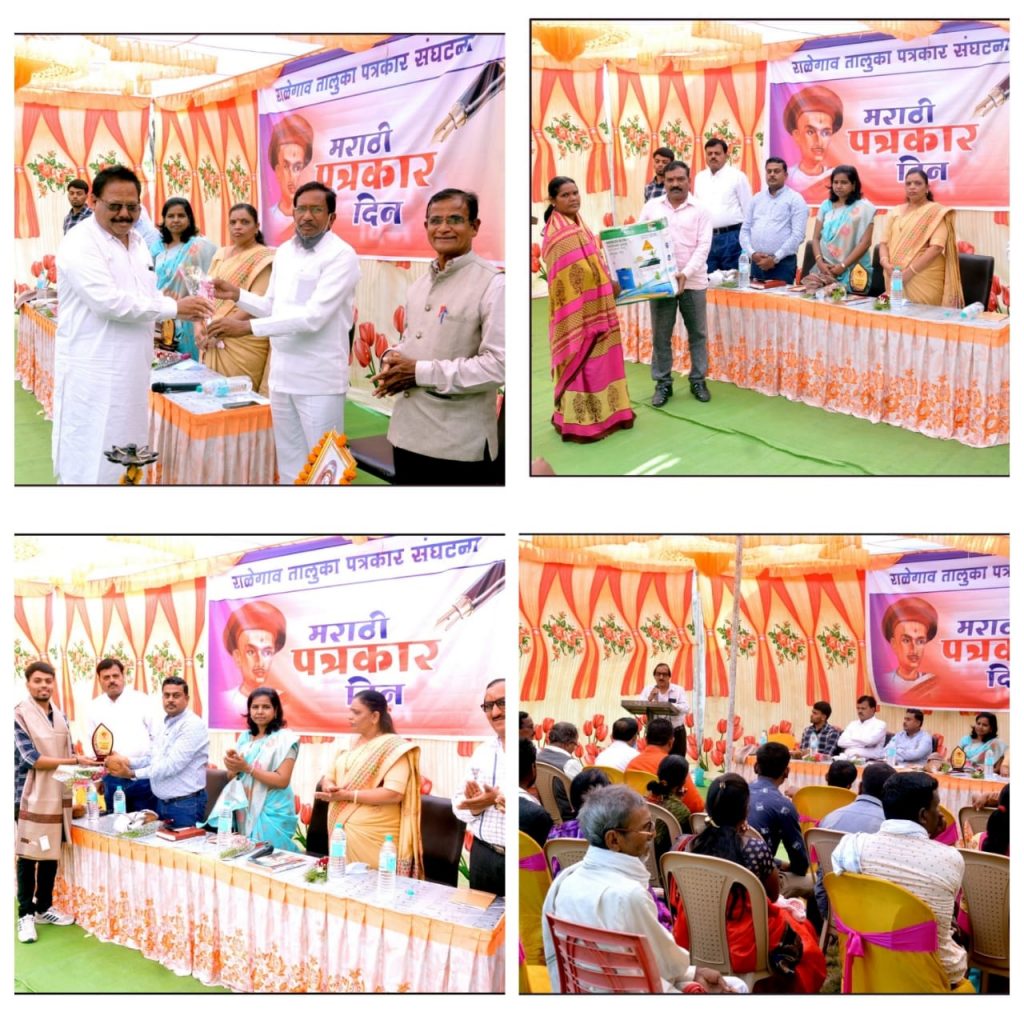 राळेगाव येथील शिवाजी उद्यान मध्ये दिनांक 6 जानेवारी रोजी आद्य पत्रकार आचार्य बाळशास्त्री जांभेकर यांच्या जयंती दिनी मराठी पत्रकार दिनाचे औचित्य साधून समाजातील गुणवंत विध्यार्थी वैभव चौबे, दर्पण मुथा, सौं.स्मिताताई कानडजे यांचा सत्कार यावेळी करण्यात आला तर आत्महत्याग्रस्त शेतकऱ्यांच्या कुटुंबानां मदत सुद्धा यावेळी करण्यात आली तसेच प्रा. अशोकरावजी पिंपरे यांचे पत्रकारितेतील योगदाना बाबत प्रा. वसंतरावजी पुरके यांच्या कडून सत्कार यावेळी करण्यात आला .यावेळी मंचावर कार्यक्रमाचे अध्यक्ष राळेगाव तहसीलदार डॉ.रविंद्र कानडजे, तर प्रमुख पाहुणे म्हणून माजी आ.प्रा. वसंतरावजी पुरके,पोलीस निरिक्षक संजयजी चौबे, जिल्हा ग्रामीण पत्रकार संघटनेचे सचिव गोकुलजी खडसे,राळेगाव पत्रकार संघटनेचे अध्यक्ष प्रा. अशोकरावजी पिंपरे, जेष्ठ पत्रकार डॉ. के. एस. वर्मा साहेब,महेशभाऊ शेंडे, भाजपा जिल्हा सरचिटणीस ऍड. प्रफुलभाऊ चौहान,जानरावभाऊ गिरी,प्रदिप भाऊ ठुणे, हे यावेळी उपस्थित होते.या कार्यक्रमाचे प्रास्ताविक प्रा.अशोकरावजी पिंपरे यांनी केले.. यावेळी मंचावरील अनेक मान्यवरानी आपले मनोगत पत्रकार दिनाचे औचित्य साधून व्यक्त केले. या मराठी पत्रकार दिनाच्या कार्यक्रमास राळेगाव तालुक्यातील अनेक गणमान्य नागरिक, पत्रकार संघटनेचे सदस्य मोठया संख्येने यावेळी उपस्थित होते. या कार्यक्रमाचे संचालन राजेशभाऊ काळे यांनी केले तर आभार प्रदर्शन मोहनभाऊ देशमुख यांनी केले.