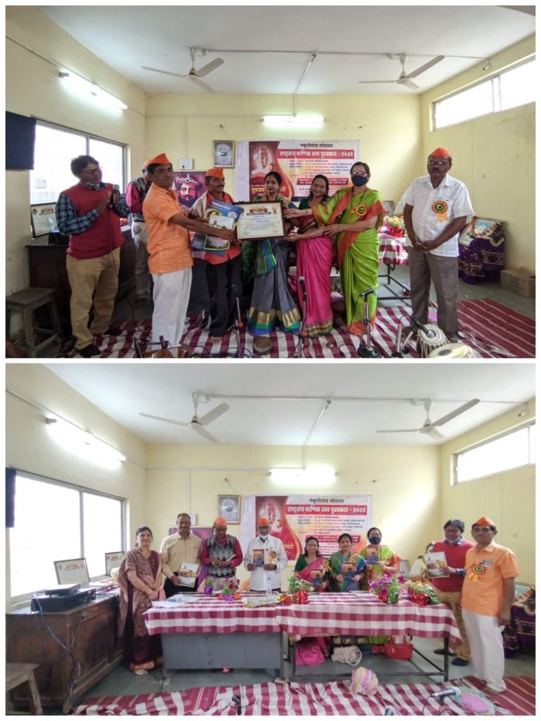 तुकड्या ची झोपडी या स्मरणिकेचे प्रकाशन आणि राष्ट्रसंत माणिक रत्न पुरस्कार सोहळा कार्यक्रम दिनांक ९जानेवारी २०२२ पुण्यश्लोक अहिल्याबाई होळकर स्मारक हॉल मध्ये संपन्न झाला.