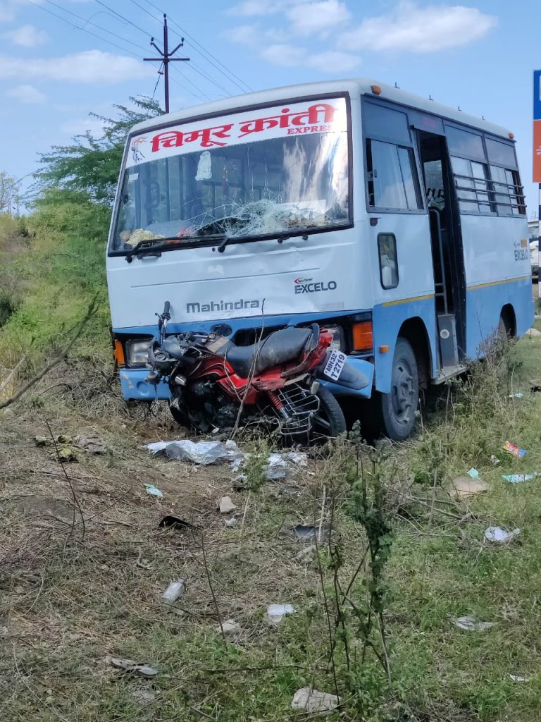 नागपूर चंद्रपूर हाय वे वरील अपघाताची घटना ताजी असतानाच वरोरा शहराबाहेर असलेल्या हिंदुस्थान पेट्रोल पंप जवळ एक ट्रॅव्हलस व दुचाकी चा अपघात झाला.छोट्या ट्रॅव्हल्स गाडी क्र. MH 40 BG 6420 या वाहनाने विरुद्ध दिशेने येणाऱ्या दुचाकीला धडक दिल्याने वृद्ध महिलेचा जागीच मृत्यु झाल्याची घटना घडली. दुचाकी चा क्र. MH 32 T 2719 असून जखमींला पुढील उपचारासाठी उपजिल्हा रुग्णालयात रवाना करण्यात आले.