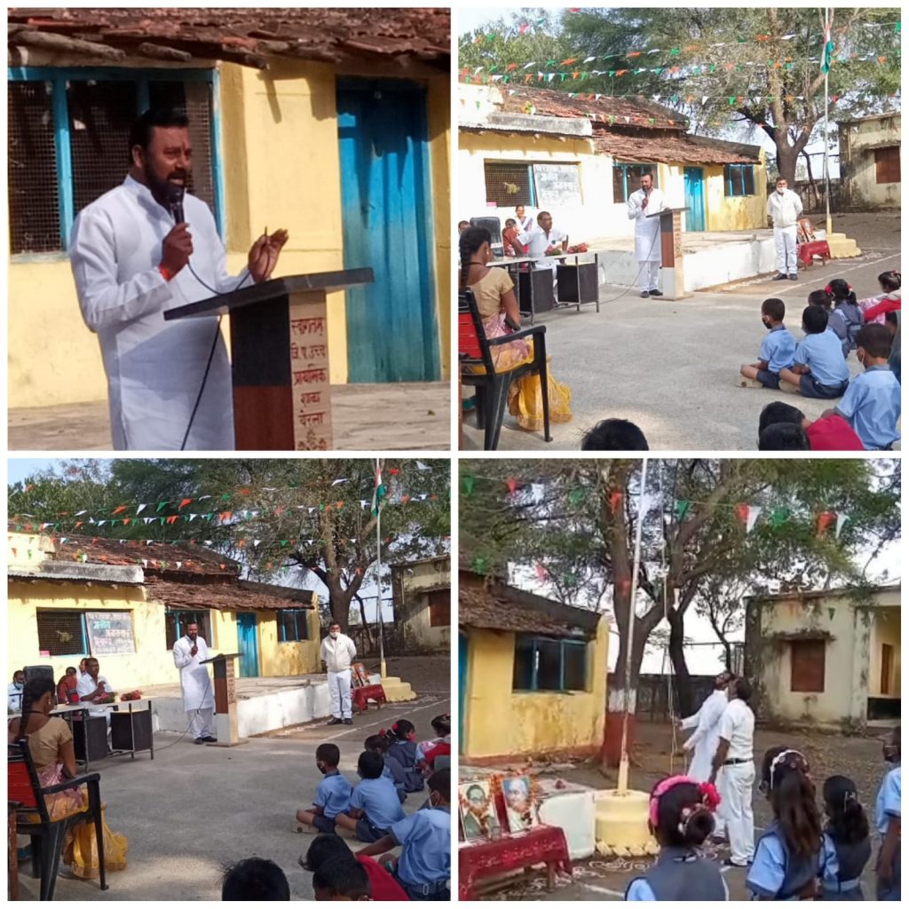 कार्यक्रमाचे प्रस्ताविक श्री कुंभार सर मुख्याध्यापक यांनी केले तसेच श्री पेंदोर यांनी प्रजासत्ताक दिनानिमित्त माहिती सांगितली तसेच अध्वक्षीय भाषणामध्ये माननीय श्री जयंतभाऊ भै. कातरकर यांनी भारतीय संविधानावर आणि कलमावर माहिती सांगितली.