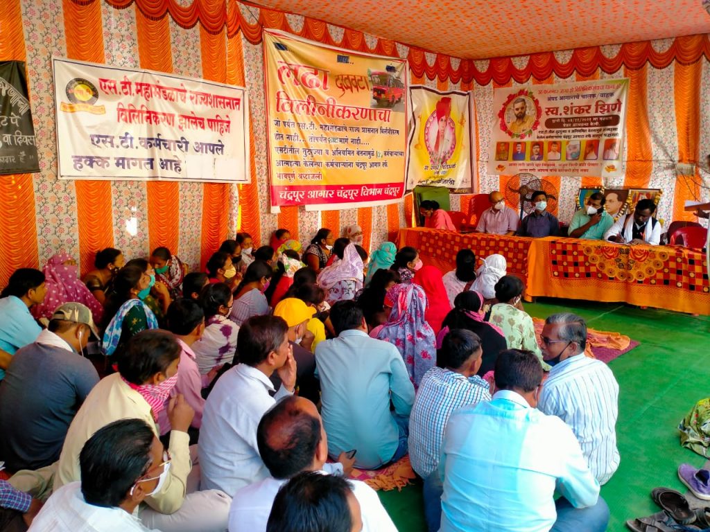 एस. कर्मचाऱ्यांचा महाराष्ट्र शासनात विलागिकरण करण्यासाठी मागील 106 दिवसापासून जिल्ह्यात आंदोलन सुरू असून महाराष्ट्र शासनाने आंदोलनकर्त्यांना अजूनही दाद दिली नसल्याने कर्मचाऱ्यांवर उपासमारीची पाळी आली असून अनेक कर्मचारी शहीद झाले. शासनाने एस. टी. कर्मचाऱ्यांना किमान वेतन लागू न केल्याने कर्मचाऱ्यांना कुटुंब जगविणे कठीण होत आहे या जाचाला कंटाळून अनेक कर्मचारी शहीद झाल्याने दुखवटा आंदोलन सुरू करण्यात आला. याची दखल श्रमिक एल्गार संघटनेने घेत गरजू कर्मचाऱ्यांना दिलासा देण्यासाठी जीवनावश्यक वस्तूंचे वाटप करून माणुसकीचे दर्शन घडवून दिले. कर्मचाऱ्यांना मार्गदर्शन करतांना ॲड. फरहात बेग, श्रमिक एल्गार चे अध्यक्ष प्रवीण चिचघरे, उपाध्यक्ष घनशाम मेश्राम, ॲड. कल्याण कुमार यांनी मार्गदर्शन केले. करून किट वाटप केली व शुभेछ्या दिल्या यावेळी सर्व कर्मचारी आभार मानले.