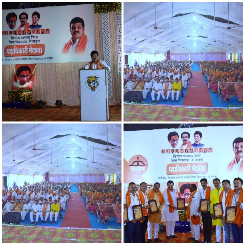 आज दिग्रस मतदारसंघातील नेर येथे माजी मंत्री आमदार संजय भाऊ राठोड यांच्या उपस्थितीत नेर तालुक्यातील व शहरातील शिवसेना पदाधिकारी मेळावा पार पडला.ह्या मेळाव्यात शिवसेना व महिला आघाडी पदाधिकाऱ्यांना नियुक्तीपत्र देण्यात आले.ह्या प्रसंगी जिल्हा परिषदेच्या अध्यक्षा कालिंदाताई पवार,शिक्षण व आरोग्य सभापती श्रीधरकाका मोहोड,जिल्हा प्रमुख पराग भाऊ पिंगळे महिला आघाडी जिल्हा संघटिका निर्मलाताई विनकरे,तालुका प्रमुख मनोज नाल्हे,शहर प्रमुख दीपक आडे,पंचायत समिती सभापती सिंधुताई चव्हाण,कृषी उत्पन्न बाजार समिती सभापती भाऊराव ढवळे,जिल्हा नियोजन समिती सदस्य हरिहर लिंगनवार,जेष्ठ मार्गदर्शक परमानंद अग्रवाल,जेष्ठ मार्गदर्शक नामदेवराव खोब्रागडे,महिला आघाडी तालुका प्रमुख वैशालीताई मासाळ,शहर संघटिका अर्चनाताई इसाळकर ताई,शहर संघटिका रश्मीताई पेटकर व जिल्हा परिषद सदस्य,पंचायत समिती सदस्य,नगर सेवक,शाखा प्रमुख,शाखा पदाधिकारी व महिला आघाडी पदाधिकारी मोठ्या संख्येने उपस्थित होते.