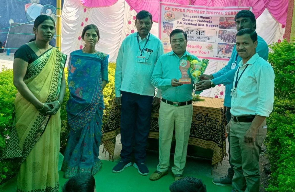 जि.प.उच्च प्राथमिक शाळा, थुगाव निपाणी शाळेतील विद्यार्थ्यांनी आयोजित केलेल्या याच ग्रेट भेट उपक्रमात आजचे पुष्प गुंफले ते काटोल गटशिक्षणाधिकारी संतोष सोनटक्के यांच्या मुलाखतीने. विद्यार्थ्यांनी त्यांच्या मनात निर्माण होणाऱ्या प्रश्नांना वाट मोकळी करून देतांना विचारलेल्या प्रश्नांना उत्तरे देतांना आयुष्यात वाचनाला आणि अभ्यासासोबतच खेळाला अनन्यसाधारण महत्व असल्याचे मत व्यक्त केले. इंग्रजी विषयाची भीती दूर करण्यासाठी अधिकाधिक शब्दांचा साठा वाढवण्यासाठी अगदी सोप्या प्रश्नांनी घरात संवाद साधणे, इंग्रजी बातम्या ऐकणे आणि वाचणे यासोबतच विद्यार्थ्यांनी वर्तमानपत्रातील कात्रणे काढण्याची सवय करावी अशी सूचना केली. नोकरी सांभाळत असतांना अभ्यासाचा मेळ कसा घालता? या प्रश्नाला उत्तर देताना वेळ मिळत नसतो तो काढावा लागत असल्याचे आणि येणाऱ्या अडचणींना संधी समजून काम करावे असे मत मांडले. शाळा ही केवळ पाठ्यक्रम पूर्ण करणारी नसून विद्यार्थ्यांचा सर्वांगीण विकास साधणारी , विषयनिहाय प्रयोग कक्ष असलेली, विचारांना मुक्त आकाश उपलब्ध करून देणारी असावी असे सांगून मला अश्या शाळेचा घटक व्हायला आवडेल अशी इच्छा या मुलाखतीच्या निमित्ताने व्यक्त केली. मुलाखतीचे संचालन नूतन गोरे, हिने तर आभार प्रदर्शन प्रणाली देशमुख हिने केले. प्रश्न निर्मिती आणि सादरीकरणासाठी यश चौधरी, पार्थ हिवसे सलोनी चौधरी, निकिता हनवते, सुजल नासरे, आरुषी टेकाडे, समृद्धी लोहे, मोनिका देशमुख, नयन देशमुख, आर्या दिग्रसकर, रिया चौधरी, दिव्या देशमुख, यामिनी हनवते यांनी सहभाग घेतला. यावेळी मुख्याध्यापक धनंजय पकडे, शिक्षक संदीप बागडे, शिक्षक निलेश शहाकार, स्वयंसेविका दिपाली हिवसे, स्वयंसेविका संध्या नागपूरे उपस्थित होते.