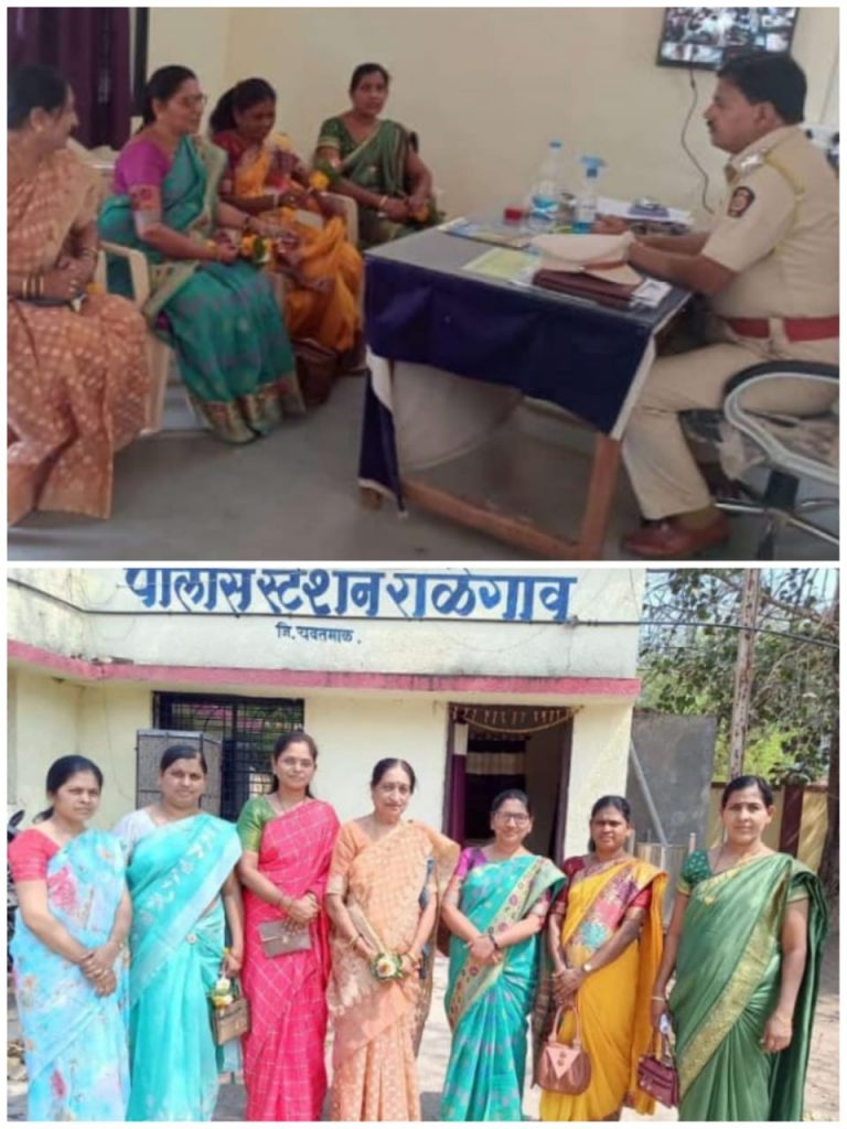 जागतिक महिला दिनानिमित्त पोलीस स्टेशन राळेगाव येथे दक्षता महिला समिती सदस्यांचा ठाणेदार संजय चोबे यांच्या हस्ते पुष्पगुच्छ देऊन सत्कार ! करण्यात आला .शोभाताई इंगोले, माधुरीताई डाखोरे,करुणाताई वानखडे, निमिताताई लभाने, प्रणालीताई धुमाळ, रेखाताई कुमरे, अॅड. रोशनीताई वानोडे, (सौ कामडी ) यांचा सत्कार करण्यात आला.नशाबंदी मंडळ महाराष्ट्र राज्य जिल्हा संघटक यवतमाळ जिल्हा संघटक ड. रोशनी वानोडे यांनी ठाणेदार संजय चोबे नशाबंदी मंडळाचे पत्रक दिले. त्यावेळी त्यांनी त्यांचे मनोगत व्यक्त केले व व्यसन मुक्तीच्या कार्यक्रमाला शुभेच्छा दिल्या. कार्यक्रमाच्या यशस्वितेकरिता युवराज पाईकराव व इतर पोलिस बांधवांनी सहकार्य केले.
