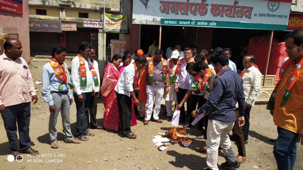 राज्याचे माजी मुख्यमंत्री तथा विरोधी पक्ष नेते देवेंद्र फडणवीस यांना पोलीसांनी चौकशी साठी नोटीस दिली. या प्रकारा नंतर भारतीय जनता पार्टी संपूर्ण राज्यभरात आक्रमक झाली. राळेगाव भारतीय जनता पार्टीच्या पदाधिकारी व कार्यकर्त्यांनी नोटीसीच्या प्रती जाळून महाविकास आघाडी सरकारचा निषेध करत जोरदार घोषणाबाजी केली.