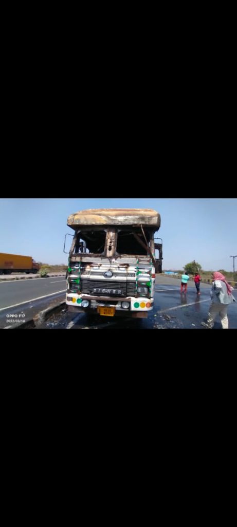या आगीत ट्रकच्या समोरील कॅबिनचे मोठ्या प्रमाणात नुकसान झाले असून कोणतीच जीवितहानी झाली नाही,