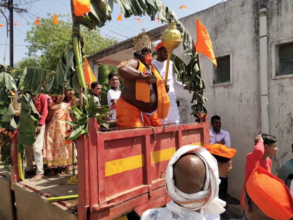 मिरवणुकीतील दिंडीत बजरंग बली आकर्षण केंद्र होते.