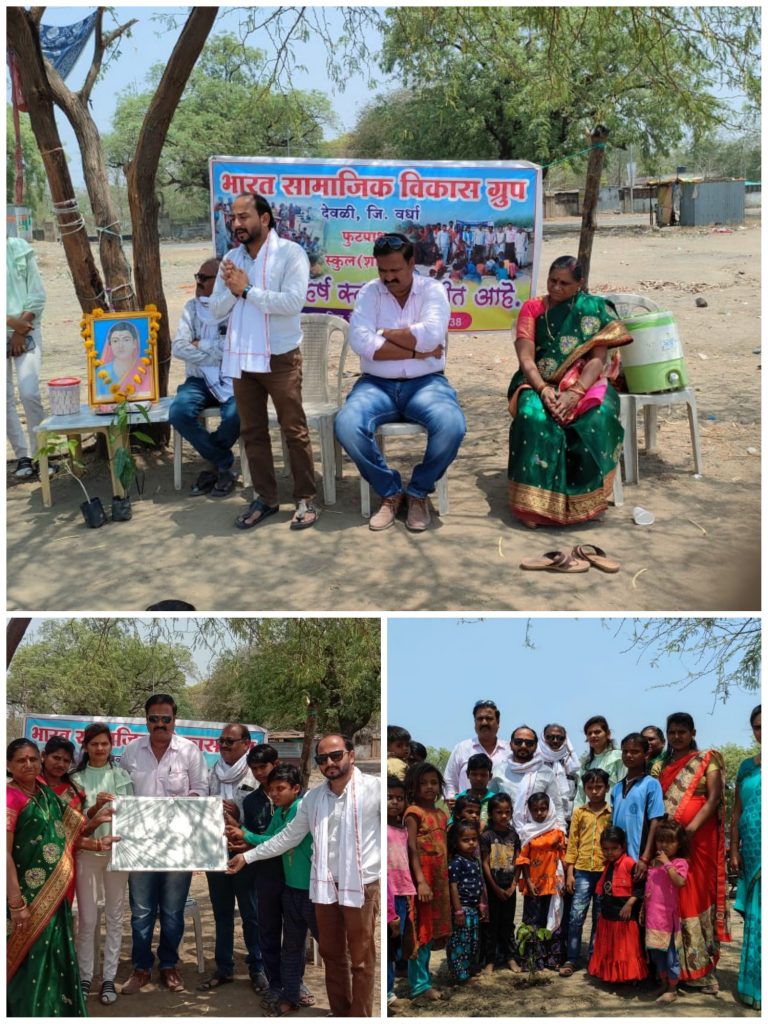 देवळी शहरातील तहसील कार्यालयासमोर फुटपाथ शाळेत भारतीय संस्कृतीमध्ये प्रत्येक सणाला विशेष महत्त्व आहे त्यामुळे कोणताही सण असो वा उत्सव येथे प्रत्येक गोष्ट मोठ्या उत्साहात व दणक्यात साजरी केली जाते यापैकीच एक सण म्हणजे गुढीपाडवा मराठी नवीन वर्षाची सुरुवात या दिवसाने होते त्यामुळे “गुढीपाडवा” हा सण सास्कृतिक व धार्मिक गोष्टी सोबतच पर्यावरण व निसर्गाशी जोडला गेलेला आहेत म्हणून हा उपक्रम आयोजित केला तर या कार्यक्रमाला प्रमुख पाहुणे म्हणून लाभलेले समाजसेवक , ज्येष्ठ पत्रकार किरणभाऊ ठाकरे , समीरभाऊ शेख , योगेशभाऊ कांबळे तर अध्यक्षा श्रीमती निर्मलाबाई वैद्य यांच्या उपस्थितीत कार्यक्रम संपन्न झाला. या कार्यक्रमाप्रसंगी विद्येची देवता सावित्रीबाई फुले यांच्या प्रतिमेला माल्यार्पण करून कार्यक्रमाला सुरुवात झाली त्या अनुषंगाने समीरभाऊ शेख यांनी सांगितले की आपण फूटपाथ शाळा चालवत आहात हा एक स्तुत्य व प्रशंसनीय उपक्रम आहे. तर योगेशभाऊ कांबळे यांनी सांगितले की शाळाबाह्य मुलांना शिक्षणाची आवड निर्माण करणे आजच्या काळात शिक्षण शिकविणे फार कठीण होत आहे कारण लहान लहान मुलांना मोबाईल अन्य व्यसनाचा छंद लागलेला दिसत आहे.आणि निर्मलाबाई वैद्य (आई) यांनी सांगितले की समाजामध्ये अनेक वाढदिवस पाहते तो मोठ्या उत्साहाने साजरा करीत दिसतात पण माझ्या वाढदिवसानिमित्त ब्लॅक बोर्ड व इतर शालेय साहित्य देवून साजरा करीत आहेत तर लोकांनी या मुलांसाठी शक्य होईल तेवढी मदत करावी अशी विनंती केली तसेच किरणभाऊ ठाकरे यांनी सांगितले की बहुजन घटकातील वंचित समाजाच्या अनेक समस्या आहेत पण खरंतर आजच्या युगात समाजामध्ये पैशाच्या जोरावर समाजकार्य अनेक लोक करीत दिसतात आणि त्यांना प्रसिद्धी , प्रकाश झोत मिळते परंतु महापुरुषांनी जो विचार , मार्ग सांगितला त्या मार्गाने फार कमी लोक जातात असे थोडक्यात सांगत हितगुज केले.व सर्वांना नास्ता वाटप करीत आनंद व्यक्त केला तसेच भारत सामाजिक विकास ग्रुप देवळीचे सचिन वैद्य संचालन तर आभार सुवर्णा वैद्य यांनी मानले. यशस्वीतेसाठी मीनल तिवारी , रेणुका दुरगुडे आणि विद्यार्थी रोशन शिदे,गजानन पवार ,श्रीराम पवार ,अजय पवार ,दीपक पवार ,योगेश तांबे ,निशा तांबे , दुर्गा पवार ,पूजा पवार , आरती पवार , साजन , तनुश्री व हर्षल दुरबुडे इत्यादी उपस्थित होते त्याचप्रमाणे इतर लोकांनी सहभाग घेत सहकार्य केले.
