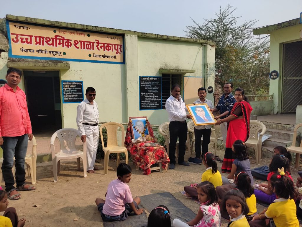 उच्च प्राथमिक शाळा रेणकापूर येथे डॉ. बाबासाहेब आंबेडकर यांची 131 वीजयंती साजरी करण्यात आली. कार्यक्रमाला शाळा समिती अध्यक्ष सौ स्वाती शेंडे, उपाध्यक्ष सुनील सहारे, सदस्य ईश्वर सिडाम व इतर सदस्य शिक्षक व बहुसंख्येने विद्यार्थी उपस्थित होते. कार्यक्रमाचे प्रास्ताविक मु अ. श्री येनुरकर सर यांनी केले. अध्यक्ष, उपाध्यक्ष व शिक्षक यांनी आपले मनोगत व्यक्त केले. शेवटी कार्यक्रमाची सांगता प्रसाद वाटून करण्यात आली. कार्यक्रमाचे संचालन श्री फुलमाळी यांनी तर आभार प्रदर्शन श्री पिपरधारे सर यांनी केले.
