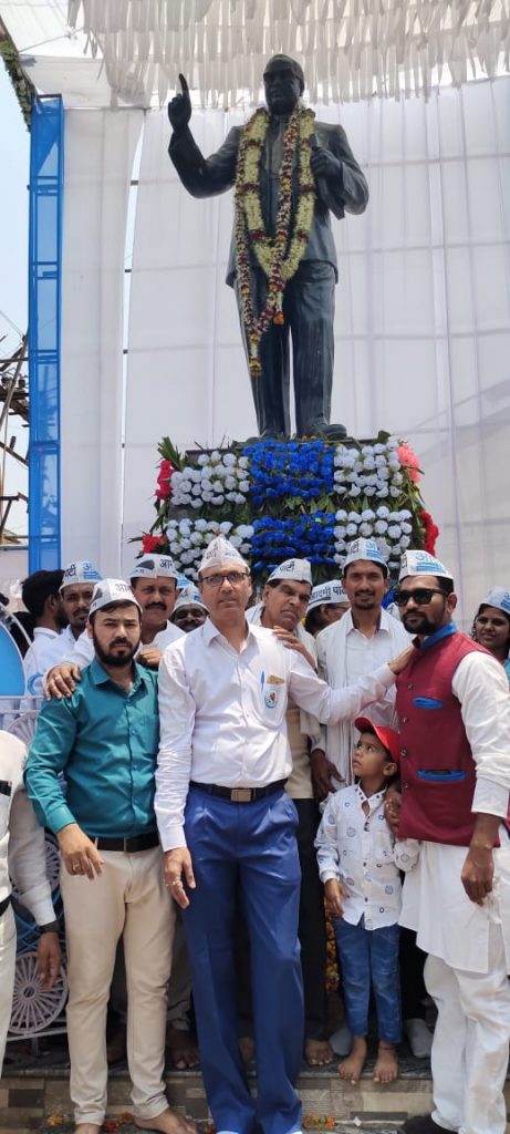 चंद्रपूर:- महामानव भारतरत्न डॉ.बाबासाहेब आंबेडकर यांच्या जयंती निमित्त महिला अध्यक्षा सुनिता ताई पाटील यांच्या नेतृत्वात आम आदमी पार्टी जिल्हा चंद्रपूर च्या वतीने शहराच्या मुख्य आंबेडकर चौकात भव्य पेडांल उभारुन माहामानव बाबासाहेब आंबेडकर यांना मानवंदना देण्यात आली व मसाला भात तथा शरबत वाटप करन्यात आले. बाबासाहेब आंबेडकर यांना अभिप्रेत असलेली सत्ता स्थापन करण्यासाठी आम आदमी पक्षाचे नेते अरविंद केजरीवाल अत्यंत प्रामाणिक प्रयत्न करीत आहेत. सध्या व्यवस्था परिवर्तनाची खरी गरज आहे बाबासाहेबांच्या अनुयायांनी आम आदमी पार्टीचे हात बळकट करण्यासाठी व्यवस्था परिवर्तनाचे लढ्यात सामील व्हावे व बाबासाहेबांचे स्वप्न साकार करावे असे जयंती दिनी आम आदमी पार्टी जिल्हाध्यक्ष सुनील देवराव मुसळे यांनी आवाहन करन्यात आले “बाबा तेरा सपना अधुरा,आम आदमी करेगी पूरा” अशा घोषणांनी परिसर दणानुन गेला कार्यक्रमाला यशस्वी करन्यासाठी राजेश चेडगुलवार आणी सिकंदर सागोरे यांनी विशेष परिश्रम घेतले. यावेळी भिवराज सोनि , दिलीप तेलंग, राजू कुडे, कालिदास ओरके, प्रशांत रामटेके, राहुल ठावरी, मनोहर पाटील, निलेश रामटेके, राजकुमार कांबळे, दिलेश पाटील, निलेश मून , चैतन्य पाटील, प्रणय पाटील, सनद पाटील, नंदलाल पाटील, प्रमोद चिवंडे, संजय भ्रामने, कुणाल माते, योगेश आपटे, संदीप तुर्क्याल, सुखदेव दारुण्डे, संतोष बोपचे, भीमराव मेंढे , निखिल बारसागडे, पपू पाझारे, गोकुल बनसोड, मंगला मुक्के , शबनम शेख, रूपा काटकर, सुजाता बोदेले, आरती आगलावे, इत्यादी अनेक कार्यकर्ते उपस्थित होते.