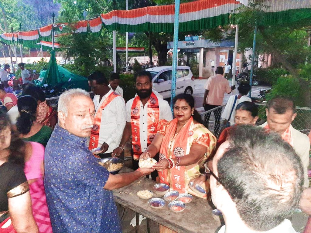 चंद्रपुर बल्लारपुर : महाराष्ट्र नवनिर्माण सेनेचे जिल्हा अध्यक्ष मा, दिलीप रामेडवार व जिल्हासचिव (बल्लारपूर विधानसभा क्षेत्र) श्री.किशोरभाऊ मडगुलवार यांच्या मार्गदर्शणात बल्लारपुर तालुका अध्यक्षा महीला सेना कल्पना पोतर्लावार व शहर अध्यक्ष विकास दुर्गे यांच्या नेतृत्वात 1 मे महाराष्ट्र दिनाचे औचित्य साधून बल्लारपुर येथील मुख्य चौकात आपल्या कार्यकारणी सदस्य समवेत येथील उपस्थीतांना तसेच दर बर्षी प्रमाने या वर्षी कामगारांना मसाला भात व शरबत चे वितरण करीत मनसे पदाधिकार्यांनी महाराष्ट्र दिन व कामगार दिन मोठ्या उत्साहात साजरा केला या कार्यक्रमाप्रसंगी महाराष्ट्र नवनिर्माण महिला सेना बल्लारपूर तालूकाअध्यक्षा सौ.कल्पनाताई पोर्तलावार बल्लारपुर,शहर अध्यक्ष विकास दुर्गे,मनविसे शहरध्यक्ष प्रवीण दासारपु,शहरअध्यक्षा मंगला घडले,शहरसचिव वारा लक्ष्मी,शुभम वानखेडे,कृष्णा पोर्तलावार,संजु गड्डमवार,यशोदा मंचर्लावार,ईशान पंदिलवार,सचिन दहिकर व मनसैनिक उपस्थीत होते