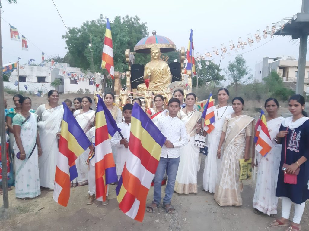 शांततेचा संदेश देणारे तथागत भगवान गौतम बुद्ध यांच्या जयंतीनिमित्त १६ मे २०२२ रोज सोमवारला शहरातील महिलानी सकाळी ८:०० वाजता पासून आंबेडकर पुतळा येथे एकच गर्दी केली असून त्रिशरण पंचशील ग्रहण करून तथागताना अभिवादन केले .