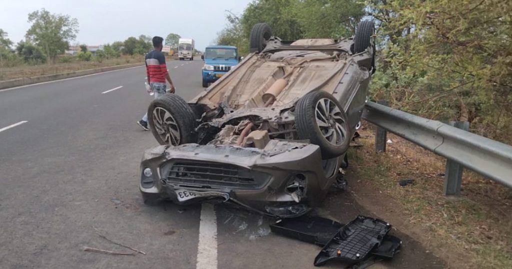 या झालेल्या अपघातात सुहास फडणीस वय ३७ वर्ष रा नागपूर हे आपल्या बलेनो वाहन क्र एम एच ३१ एफ इ ३८३३ ने हेंद्रबाद वरून नागपुर कडे जात असताना राष्ट्रीय महामार्गावरील बोरी इचोड गावाजवळ असलेल्या अशोका हॉटेलसमोर दोन बंदर रोडच्या मधोमध आडवे आल्याने त्यांना वाचविण्याच्या नादात गाडी चालकाचे वाहनवरील नियंत्रण सुटून वाहन हे वेगात असल्याने डिव्हायडर तोडून रस्त्याच्या विरुद्ध दिशेने वाहनाने दोन पलटी घेतल्या हा अपघात इतका भीषण होता की वाहनाचे यात मोठे नुकसान झाले असून यामध्ये वाहन चालक हे या अपघातातून सुखरूप बचावले असून त्याला डोक्याला व हातापायाला किरकोळ मार लागला असून त्याला पुढील उपचारास दवाखान्यात पाठविण्यात आले घटनास्थळी वडकी पोलीस स्टेशनचे पोलीस कर्मचारी तात्काळ दाखल होऊन घटनेचा पुढील तपास करीत आहे.