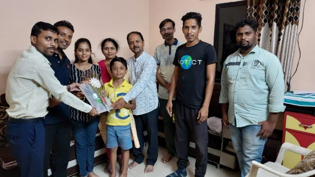 कु.मुणाली उमेश लाभे हिचा हिंदू युवा संघठन शाखा वरोडा कडुन सत्कार वरोडा (ताप्र) हिंदू युव संघठन शाखा वरोडा वतिने नुकतेच लागलेले १२वी चे बोडाचे निकाल जाहिर झाले त्यात वरोडा येथिल दिशा एज्युपाईँट ची विद्यार्थी ने कु मुणाली उमेश लाभे हिने जिल्ह्यात प्रथम क्रमांक पटकविला बद्दल तिचा शिव छत्रपती महाराजाची प्रतिमा गुलदस्ता व पेढे देऊन सत्कार करण्यात आले या प्रसंगी हिंदू युवा संघठन चे शहर अध्यक्ष तथा सामाजिक कार्यकर्ते प्रतिक उर्फ मुन्ना कुमार पाठक याने आपल्या मनोगत मधे कु.मुणाली हिने संपुर्ण जिल्ह्यात व तालुक्याचे नाव उंच पातळीवर नेले हि खुप कौतुकास्पद व गौरवशाली बाब आहे भविष्यात असेच यश प्राप्त करावे आशा व्यक्त केली या प्रसंगी हिंदू युवा संघठन चे शहर अध्यक्ष प्रतिक उर्फ मुन्ना कुमार पाठक , शहर उपाध्यक्ष धवल पटेल , शहर कोषाध्यक्ष तुषार संचेती शहर संघटक सुमित घोरपडे शहर कार्यवाह पपु पटेल ,शाखा अध्यक्ष चेतन चिंचोळकर , शुभम चोपने , तरुण पिंपळवशेडे , अक्षय जिन्नावार, व असंख्य पदाधिकारी व सदस्य गण उपस्थित होते.