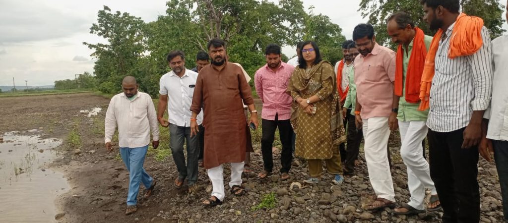 पायात बूट घालून रस्त्याकाठच्या शेतांची केली पाहणी?