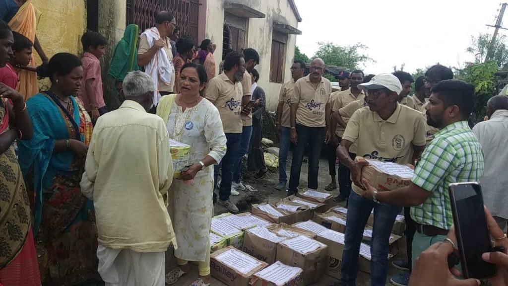 राळेगाव :– दोन आठवड्यापूर्वी राळेगाव तालुक्यातील अनेक गावांत पूर परिस्थिती उद्भवली होती,अनेक घरे आजही प्रभावित आहेत,आज सकाळी संकल्प फाउंडेशन च्या वतीने व यवतमाळ कर जनतेच्या सहभागाने राळेगाव तालुक्यातील पूरग्रस्त गावांना भेटी देऊन जीवनावश्यक वस्तूंची किट प्रत्येक कुटुंबाला देण्यात आली,सकाळी ठीक 8 वाजता जिल्ह्याचे निवासी उपजिल्हाधिकारी श्री ललित कुमार वऱ्हाडे ह्यांच्या शुभेच्छासह व सर्व संस्था संघटनांचे समन्वयक श्री घन:श्याम दरणे,सामाजिक क्षेत्रातील गणमान्य व्यक्तिमत्व श्री सुरेश राठी ह्यांच्या उपस्थितीत संकल्प फाउंडेशन, संकल्प वनिता वाहिनी, संकल्प आपुलकी च्या 20 जणांची चमू राळेगाव साठी रवाना झाली,राळेगाव तहसील चे तहसीलदार रवींद्र कानडजे, नायब तहसीलदार श्री बदकी साहेब, मंडळ अधिकारी,निनावे तलाठी महिंन्द्रेकर म्याडम,कृषी सहाय्यक,स्थानिक गावातील सरपंच ह्या प्रशासनिक अधिकारी ,लोकप्रतिनिधी, कर्मचाऱ्यांच्या सोबत तालुक्यातील सावंगी (पे) येथील 68 पूरग्रस्तांना,एकबुर्जी येथील 31,कोपरी येथील 19,रोहिणी येथील 26 पूरग्रस्त कुटुंबांना जीवनावश्यक किराणा।किट चे वितरण।ह्यावेळी करण्यात आले,ह्या मोहिमेसाठी संकल्प फाउंडेशन चे जिल्हाध्यक्ष प्रलय टिप्रमवार, सरचिटणीस वसंत शेळके, संयोजक गजेंद्र उन्हाळे,जिल्हा कार्यकारिणी सदस्य,रवी ठाकूर,आशिष महल्ले,मनोज तामगाडगे,राजेंद्र गावंडे,वीरेंद्र कलोसिया,अशोक पलंगे,रवी कडू,शहराध्यक्ष विनोद दोंदल,आकाश भारती, शुभम वानखडे,अक्षय हांडे,अनिकेत गोपाळे,संकल्प वनिता वाहिनीच्या महिला प्रमुख,अंजली फेंडर,संगीता टिप्रमवार, वर्षा गावंडे,पूनम।शेंडे,स्नेहल रेचे ह्यांनी योगदान दिले..