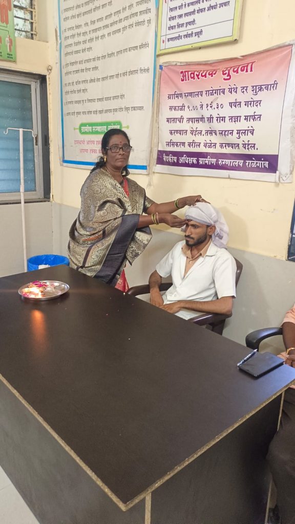 राळेगाव येथील ग्रामीण रुग्णालय येथे कार्यात असलेले ड्रॉ. व कर्मचारी हे आपली सेवा देत असताना त्यांना रक्षाबंधन उत्सव आपल्या गावी जावून साजरा करता येत नाही हे भान ठेवून सामाजिक बांधिलकी जोपासून आज रोजी नारळी पौणिमा रक्षाबंधन निमित्त शिवसेना महिला आघाडीतर्फे ग्रामिण रुग्णालय राळेगाव येथील कर्तव्य दक्ष मुख्य वैदकिय अधिकारी डॉ. पंकज चव्हाण,श्रीकान्त लापसेटवार मुख्य टेक्नीशियन ,ब्रदर एकनाथ काळे यांना व कर्मचारी वर्गांना राखी बांधुन रक्षाबंधन हा सण साजरा केला, हा सण शिवसेना महिला आघाडीतर्फे सौ. वर्षाताई मोघे महिला आघाडी तालुकाप्रख, लता भोयर महिला आघाडी शहरप्रमुख , सौ सिमरन इमरान पठाण नगरसेविका तथा गटनेता न.प राळेगाव, सौ . मिना शंकर गायधने मा. नगरसेविका, सौ शितल संतोष कोकुलवार , सौ रिता राकेश राउळकर , सौ. कांताबाई मेश्राम , सौ . श्रृति जगदिश सरदार , सौ मंदाताई गेडाम,लिला पेन्दोर , यांनी साजरा केला, यावेळी शिवसेना तालुका प्रमुख विनोद काकडे, शहरप्रमुख राकेश राउळकर , शंकर गायधने, धनराजजी श्रीरामे, संतोष कोकुलवार नगरसेवक तथा बांधकाम सभापती न, प, महेन्द्र तुमाने राळेगाव, इमरान पठाण शहर संघटक, अमोल राउत , युवासेना तलुका प्रमुख , योगेश मलोन्डे युवासेना शहरप्रमुख मनोज वाकुलकर , दिपक येवले , सुनिल शिरसागर, सुनिल सावरकर, आदेश आडे , अंकुश गेडाम, मनोज राउत . हनुमान डाखोरे व विशेष उपस्थिती ग्रामीण रुग्णालय राळेगाव येथील सर्व कर्मचारी तसेच तालुक्यातील सर्व परिचित भरतभाउ परचाके यांची उपस्थिती होती, शिवसेना महिला आघाडिच्या या उपक्रमाचे वैदकिय अधिकारी व जनतेकडून कौतुक करण्यात येत आहे.