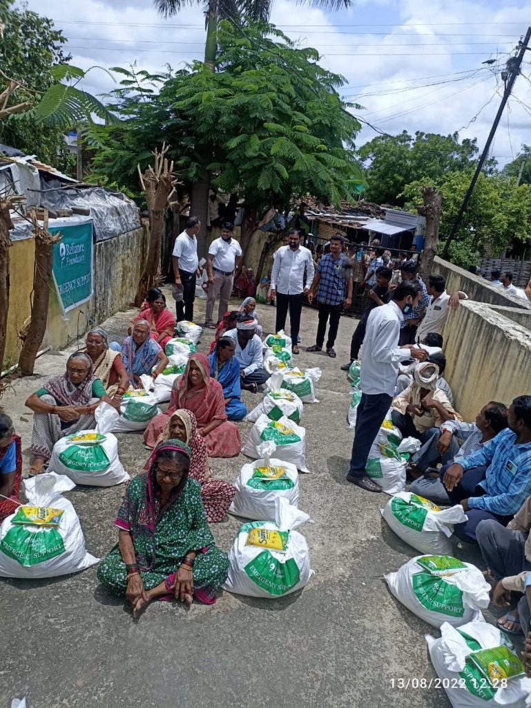 राळेगाव तालुक्यात झालेल्या अतिवृष्टीमुळे शेतीचे फार मोठे नुकसान झाले तसेच अनेक गावात पाणी शिरल्यामुळे घराची पडझड होऊन घरातील अन्नधान्य सह घरातील वस्तू सुद्धा खराब झाल्या आहे. या पुरग्रस्थाना ला “एक हात मदतीचा” द्यावा म्हणून #रिलायन्स फाउंडेशन व तहसील कार्यालय राळेगाव यांच्या विद्यमाने चहांद व लाडकी या गावांमध्ये पूरग्रस्तांना अन्नधान्य किटचे वाटप करण्यात आले यावेळी 300 कुटुंबांना अन्नधान्य किटचे वाटप करण्यात आले. सदर रेशन किट ही रिलायन्स फाउंडेशन मार्फत देण्यात आले. त्यावेळी गावातील सरपंच सौ. रूपाली शंकर राऊत, श्री संजय झिलपे ग्रामसेवक तसेच निखिल शेळके ग्रामपंचायत सदस्य तसेच इतर पदाधिकारी यांच्या सहकार्यामुळे उत्कृष्टरित्या पार पडले.