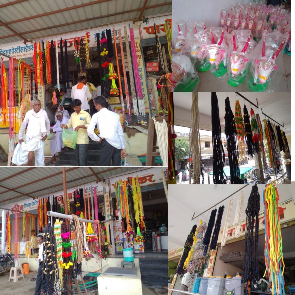 पोळा सण जवळ आला असून बैल सजविण्याचे विविध साहित्य बाजार पेठेत दाखल झाले, शेतकऱ्याकडुन विविध साहित्य खरेदी होताना बघायला मिळत आहे. पोळा सणा सर्वांचे लक्ष लागले आहे, कोरोनाचा संकट संपल्याने सर्वाच धार्मिक सण उत्सव आता मोठ्या उत्साहात साजरे होत, आहे .जगाचा पोशिंदा असलेला शेतकऱ्याचा सण म्हणजे पोळा हा सण अवघ्या काही दिवसात आहे, बाजारपेठे मध्ये सर्जा राजा दाखल झाला आहे, व पोळा सणासाठी मातीचे बनवलेले बैल व बैल जोड्या विक्रीसाठी दाखल झाल्यामुळे रंगबिरंगी लहान मोठे बैल जोड्या आकर्षक ठरत आहे, पोळा सणासाठी या अनुसरून ढाणकी येथील बाजारात बैलांच्या सजावटीचे, घुंगराची, घंटी व बैलाच्या अनेक व विविध प्रकारचा साज विक्रीसाठी आला आहे. पोळा सणाचा तयारीसाठी शेतकऱ्याचे लगबग सुरू झाली आहे. त्यामुळे शेतकरी बैलांना साज विकत घेण्यासाठी बाजारात येत आहे.