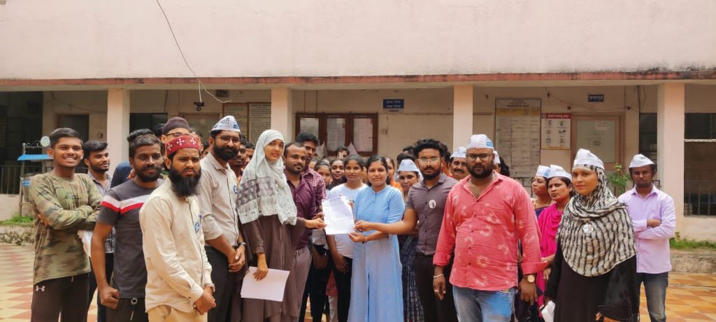 निवेदन देताना शहराध्यक्ष रविकुमार पुप्पलवार, शहर उपाध्यक्ष अफज़ल अली, गणेश सिलगमवार, सचिव ज्योतिताई बाबरे, यूथ संयोजक सागर कांबळे, उपाध्यक्ष गगन सकिनाला, CYSS प्रमुख शिरीन सिद्दीकी, सह प्रमुख आशीष गेडाम, शहर महिला संयोजिका अलकाताई वेले, उपाध्यक्ष सलमा सिद्दीकी, संघठन मंत्री, सरिता गुजर, रोहित जनगमवार, सुदाकर गेडाम, दुर्गा शेंडे, श्रीकांत टेमबुरडे, अकादमीचे गुरु आणि इत्यादि सैकड़ों कार्यकर्ते, विद्यार्थी यांची उपस्थिति होती।