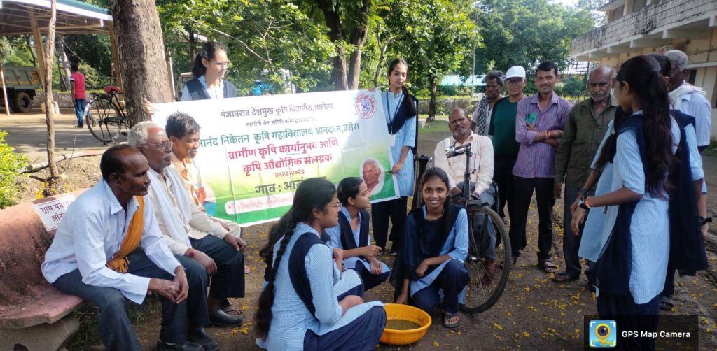 कु. नुपुर बिसेन, कु. ईशा ढोक, कु. अदिती दीक्षीत, कु. तन्वी देशमुख, कु. मोनाली गावंडे, कु. रिया गेडाम, कु. रुषाली पवार आणि कु. तेजस बोरकर या विद्यार्थीनींचा यामध्ये समावेश होता. यासाठी आनंद निकेतन कृषी महाविद्यालयाचे प्राचार्य डॉ. एस. एस. पोतदार सर, कार्यक्रम प्रभारी डॉ. आर. वी. महाजन सर विषय विशेतज्ञ डॉ. पी. एन. राखोंडे सर यांचे मार्गदर्शन लाभले.