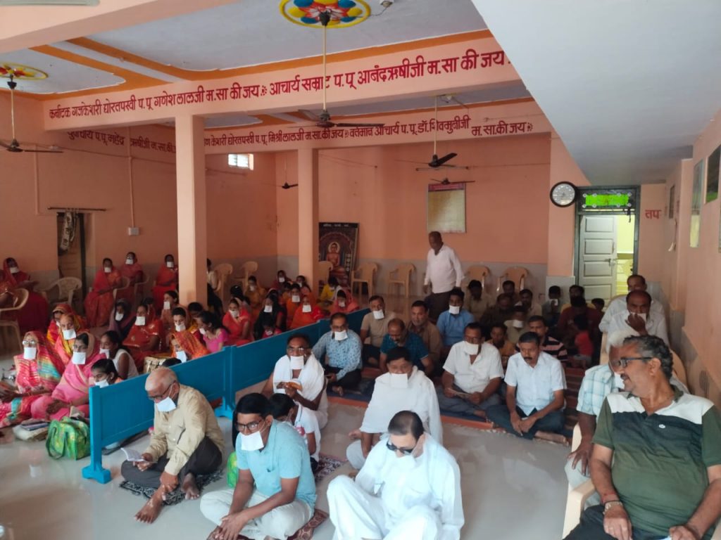 अंतकरणातून मी त्याला वाईट समजतो आणि गुरूसमोर त्याची निंदा करून मी माझ्या आत्म्याला याप्रमाणे पाप क्रियेतून मुक्त करीत आहे कोळशापेक्षाही आपल्या आत्म्यावरील सादर पापाने काळी कुठे झाली आहे त्यासाठी 48 मिनिटांची सामायिक क्रिया करायला हवी ही क्रिया त्याच्या उलट 84 योनीच्या चक्रविवातून मुक्त करते हा दिवसातील अल्पसा वेळ आयुष्य उधारण्याला कामी लागतो. जसा विहिरीतून पाणी काढण्यासाठी बादलीचा दोरा हातभर हातात उडतो मात्र तोच पाणी बादलीत ओढून आपली कृष्णा भागवितो तसेच हा दिलेला वेळ आयुष्य उदाहरणासाठी आपल्या कामी येतो. असे यांनी सांगितले हे सगळे काही श्रवण करण्यासाठी सभागृहात श्रोत्यांसह भाविकांनी खचाखच भरला होता.