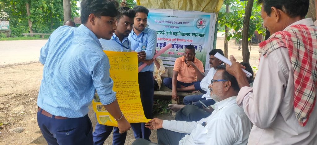 कृषि कार्यानुभवकार्याक्रम २०२२अंतर्गत मारोतराव वादाफळे कृषि महाविद्यालय यवतमाळ येथील विद्यार्थी सुमेध सुरेशराव भोयर, चैतन्य नरसिंग राठोड,प्रणय साहेबराव मून, वैभव रवींद्र गावंडे . यांनी शेतकऱ्यांना फायदेशीर कीटक आणि हानिकारक कीटक त्या बद्दल माहिती दिली. त फायदेशीर कीटक मधमाशी , फुलपाखरू, लाख कीटक, रेशीम किडा यांचे महत्व सांगण्यात आले व हानिकरक कीटक पिकांना कश्या प्रकारे हानी पोहचवतात याबद्दल विध्यार्थ्यांनी शेतकऱ्यांना माहिती दिली. हा उपक्रम प्राचार्य डॉ. आर. ए. ठाकरे, उपप्राचार्य एम. व्ही. कडू, कार्यक्रम अधिकारी प्रा. एस. व्हि. महानूर, विषय तज्ञा एस. टी. भोयर या सर्व शिक्षकांचे मार्गदर्शन लाभले.