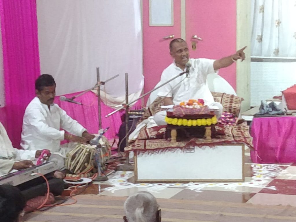 तसेच सृष्टीत बाह्यकारी संघर्ष हा फक्त स्वार्थ अहंकारापोटी होत असतो यातून मिळणारा विजय हा चिरंतन नसून तो पराजयाच्या लपंडावात असतो आपण सारे संसार रुपी चिखलात जन्माला आलो मात्र त्या चिखलातून कमळाप्रमाणे आकृष्ट करते तसे भगवंताने समान व जनतेला आपणाकडे आकर्षित केले व दाखवून दिले त्यांनी स्वतः दुःख भोगून इतरांना सुखी करण्याचा प्रयत्न केला या जगात लोक चार प्रकारातून जगत असतात म्हणजे स्वतःला सुखी करण्यासाठी दुसऱ्याला दुःखात लोटणे दुसऱ्याला सुख देऊ नये स्वतः सुखी बनणे स्वतः दुःखात व दुसऱ्यालाही सुखात तर स्वतः सुखी बनणे लोकांना सुखात पाहणे या पृथ्वीवर त्यांनी स्वतःचे जीवन भगवंत बनवून लोकांना दुर्गुणापासून होणाऱ्या धोक्यातून वाचवले नवरात्रीचा पाचव्या दिवशी पूजाअर्चा केली जाते याच देवीच्या माध्यमातून देवतांनी सूर असूराच्या युद्धात असुरावर विजय प्राप्त केला तो देवासाठी असुरालाही मिळालेल्या वरदानातून असे ठरला होता. ती देवी कुमारिकेच्या हातातून सफल झाला कारण ही देवी म्हणजे आदिशक्ती आदिमायेच्या रूपातून ज्या रूपात अवतरले ती स्वतः परब्रम्ह स्वरूपात असते केवळ आपल्या इच्छेने सृष्टीची रचना पालन व कळ नियंत्रण ठरते असेही सुरेश महाराज यावेळी म्हणाले या कार्यक्रमाला हनुमान मंदिराचा सभागृह अगदी खचाखच भरला होता.