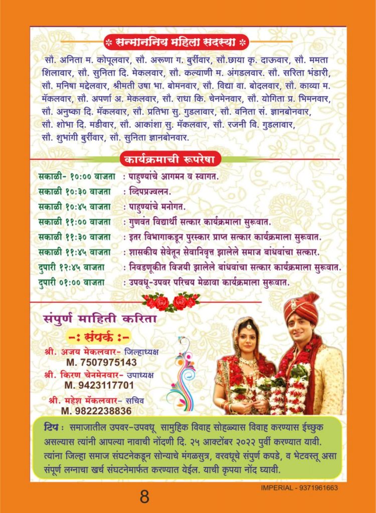 चंद्रपुर येथे भव्य राज्यस्तरीय गोल्ला – गोलकर ( यादव ) समाजाचा ऊपवर – ऊपवधु परिचय मेळावा तथा गुणवंत विद्यार्थी तसेच सेवानिवृत्तधारकांचा सत्कार सोहळा . गोल्ला-गोलकर ,गोल्लेवार-यादव समाज संघटना जिल्हा चंद्रपुर तर्फ दिनांक 30 आॕक्टोबर 2022 वेळ सकाळी 11 वाजता राजीव गांधी सभागृह ,जंयत टाॕकीज जवळ ,चंद्रपुर येथे भव्य राज्यस्तरीय ऊपवर-ऊपवधु परिचय मेळावा तथा गुणवंत विद्यार्थी तसेच सेवानिवृत्तधारकांचा सत्कार सोहळ्याचे आयोजन करण्यात आले आहे. या कार्यक्रमाचे ऊद्दघाटक – ना.सुधीरभाऊ मुनगंटीवार मंत्री वने ,सांस्कृतिक कार्य ,मस्त्यव्यवसाय ,महाराष्ट्र राज्य तथा पालकमंत्री चंद्रपुर जिल्हा , कार्यक्रमाचे अध्यक्ष – गणपतराव बुर्रीवार जेष्ठसमाजसेवक , प्रमुख अतिथी – रविकिरण यादव चित्रपट निर्माते तथा साई वैकुंठ ट्रस्ट आदिलाबाद (तेलंगाणा राज्य ) ,नामदेवराव आयलवाड प्रदेश अध्यक्ष गो.गो.यादव समाज सघंटना ,क्रिष्णाजी यादव – जेष्ठसमाजसेवक नागपुर ,प्रकाशराव मॕकलवार जेष्ठसमाजसेवक यवतमाळ ,श्रीरामजी गालेवाड जेष्ठसमाजसेवक पुणे ,मनोहरजी बोदलवार जेष्ठसमाजसेवक गडचिरोली ,पुरुषोत्तम कोमलवार सेवानिवृत्त नायब तहसिलदार मुल ,श्रीनिवास जल्लेवार मोटार वाहन निरीक्षक चंद्रपुर ,प्राचार्य डाॕ.भास्कर बहिरवार गुरुनानक महाविद्यालय बल्लारपुर ,दिगांबर जंगीलवाड सेवानिवृत्त ऊपकुलसचिव कृषि विद्यापीठ परभणी ,संदेशजी कामटे – कार्यकारी अभियंता मुबंई ,दिगांबरजी करेवाड जेष्ठसमाजसेवक नांदेड ,सुनिल ऊट्टलवार नगरसेवक नगरपंचायत सिदेंवाही ,प्राचार्य साईनाथ आदर्लावार,महात्मा गांधी विद्यालय आरमोरी , भास्कर नन्नावार बांधकाम सभापती नगरपंचायत सिदेंवाही ,संतोष मंथनवार जिल्हाध्यक्ष गडचिरोली ,आंनदजी विरय्या माजी नगरसेवक बल्लारपुर ,यशवंत दंडीकवार जेष्ठसमाजसेवक गडचिरोली ,आशिष कावटवार विरोधी पक्षनेता नगरपंचायत पोंभुर्णा ,मलन्नाजी बुरमवार जेष्ठसमाजसेवक गडचिरोली ,सोमेश्वरजी पाकेवार सेवानिवृत्त मुख्याध्यापक सिदेंवाही आदि मान्यवर ऊपस्थित राहणार आहेत. तरी या राज्यस्तरीय महामेळाव्याला महाराष्ट्रातील गोल्ला-गोलकर ,गोल्लेवार-यादव समाजबांधवांनी मोठ्या संंख्येनी ऊपस्थित राहण्याचे आवाहन जिल्हाध्यक्ष -अजय मॕकलवार , ऊपाध्यक्ष – दिलीप मॕकलवार ,किरण चेनमेनवार ,कोषाध्यक्ष – कृष्णाजी दाऊवार ,सहसचिव – शंकर मद्देलवार ,श्यामराज भंडारी ,संघटक – प्रविण भिमणवार तसेच संपुर्ण कार्यकारणी सदस्यांनी केली आहे.