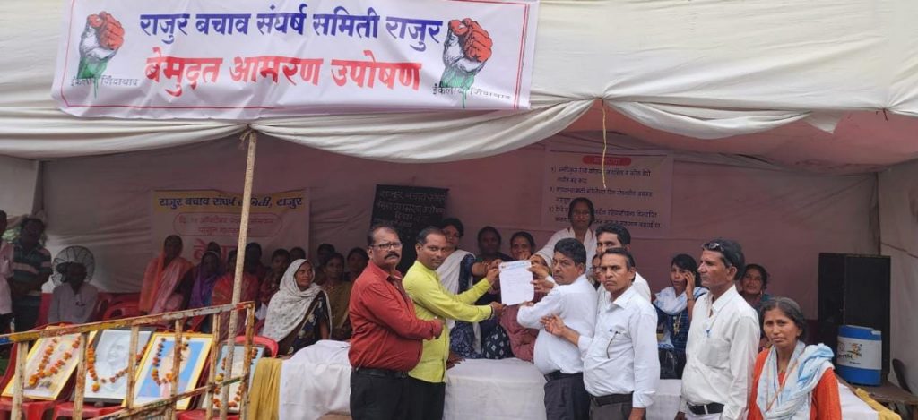 राजूर येथे आलेल्या वेगवेगळ्या खाजगी कंपन्यांच्या कोळसा सायडिंग व वेकोलीचे होत असलेले खाजगीकरण ह्यामुळे येथील राहिवासीयांना त्यांची राहत असलेली घरे खाली करण्याच्या नोटिसा देण्यात येत आहे. त्याच प्रमाणे येथील कोळसा सायडिंग रहिवासी क्षेत्रालगत असल्याने गावात प्रचंड प्रदूषण निर्माण होऊन गावात वेगवेगळ्या आजारांचे प्रादुर्भाव होत आहे. सर्वात महत्वाची बाब म्हणजे येथे सुरू असलेल्या रेल्वे कोळसा सायडिंग व कोल डेपो ला स्थानिक स्वराज्य संस्थेची व प्रदूषण नियंत्रण बोर्डाची परवानगी नसल्याने त्या अनधिकृत आहेत. या संदर्भात गेल्या 10 महिन्यापासून सातत्याने संघर्ष सुरू आहे. जिल्हाधिकारी यांनी अवैध सायडिंग हटविण्यासंदर्भात आदेश देऊनही त्याची अंमलबजावणी मात्र गेल्या 1 महिन्यापासून झाली नाही. त्यामुळे शेवटी राजूर बचाव संघर्ष समिती चे वतीने दि. 17 ऑक्टो 22, सोमवार पासून बेमुदत आमरण उपोषण वणी उपविभागीय अधिकारी यांचे कार्यालयासमोर सुरू करण्यात आले आहे.
