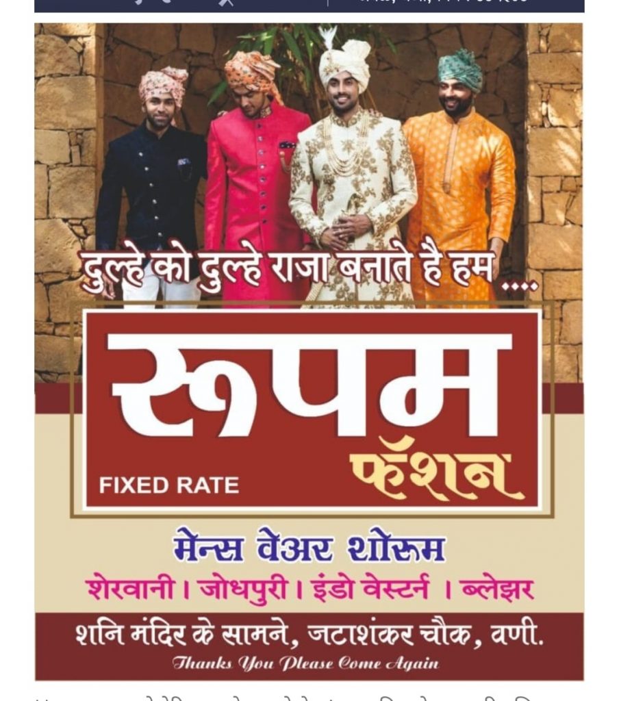 आमच्या येथे लेटेस्ट,डिज़ाइनर व वेगवेगळे प्रकारचे मेन्स शेरवानी ,जोधपुरी,इंडो वेस्टर्न व ब्लेझर मिळतील.