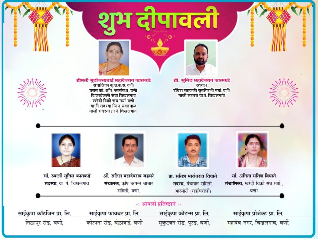 वणी विधानसभा क्षेत्रातील समस्त जनतेला दिवाळीच्या हार्दिक शुभेच्छा,शुभेच्छुक:सुनील कातकडे, मा.सरपंच ,ग्रा.पं. चिखलगाव Post author:lkhtpt Post published:October 23, 2022 Post category:Uncategorized इतरांना पाठवा Share this content Opens in a new window Opens in a new window Opens in a new window You Might Also Like आपत्ती व्यवस्थापन कायद्यानुसार पत्रकार विलास मोहिनकर यांच्यावर गुन्हा दाखल करण्याची मागणी, विलास मोहीनकर यांचे वर विविध गुन्हे दाखल April 25, 2021 मारेगाव तालुक्यातील टाकळी येथून दुर्दैवी घटना ,मण्यार साप चावल्यानं १४ महिन्याच्या चिमुकलीचा मृत्यू May 1, 2024 नवोदय क्रीडा मंडळाच्या वतीने राष्ट्रीय क्रीडा दिन साजरा August 31, 2023