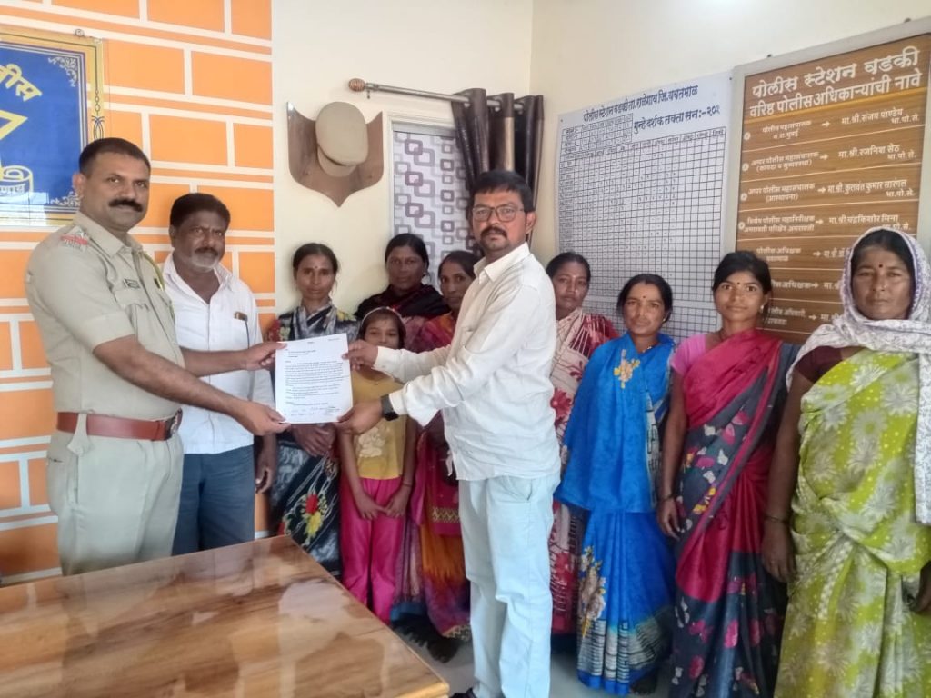 राळेगाव तालुक्यातील पळसकुंड, उमरविहीर गट ग्रामपंचायत येथिल महिलांचे वडकी पोलीस स्टेशनला निवेदन सविस्तर वृत्त असे पळसकुंड, उमरविहीर येथिल सरपंच वनिष घोसले यांच्या मार्गदर्शनाखाली पळसकुंड उमरविहीर येथिल महिलांनी दारू दुकाने बंद करण्याबाबतचे निवेदन वडकी पोलीस स्टेशनला दिले आहे.सदर आम्ही पळसकुंड उमरविहीर येथिल रहिवासी असून आपणास विनंती पुर्वक लेखी तक्रार सादर करतो की पळसकुंड उमरविहीर येथिल हातभट्टी दारू व देशी दारू छुप्या पध्दतीने विक्री सुरू आहे. हे अवैध दारू बंद करून महिलांना होत असलेला त्रास कमी करावा कारण या अवैध दारू विक्री मुळे येथिल महिलांना खूप त्रास सहन करावा लागत आहे. व याचा मात्र त्रास घरगुती वातावरणात होत आहे तर शाळेत शिकत असलेल्या मुलांना सुध्दा होत आहे सदर येथिल हातभट्टी दारू ही पावडर युक्त असुन या दारू मुळे अनेक लोकांना गंभीर बीमाऱ्या सुध्दा झालेल्या आहेत तर काही लोकांनी दारूच्या नशेत विष प्राशन करून आत्महत्या सुध्दा केलेल्या आहे. व आज रोजी त्यांचे कुटुंब उघडल्यावर आलेले आहे सदर या बाबींकडे ताबडतोब लक्ष देवून अवैध दारू विक्री करणाऱ्यांवर योग्य ती कार्यवाही करुन आम्हाला व आमच्या मुलाबाळांना या त्रासापासून मुक्त करावे. सदर संबंधित दारू विक्रेत्यांवर योग्य ती कार्यवाही न झाल्यास आम्ही गावातील सर्व महिला उपोषणाला बसु असे या निवेदनात नमूद केले आहे. सदर हे निवेदन पळसकुंड उमरविहीर येथिल कर्तव्यदक्ष सरपंच वनिष घोसले व उपसरपंच सुभाषराव शिंदे यांच्या मार्गदर्शनाखाली वडकी पोलीस स्टेशनचे ठाणेदार विनायक जाधव यांना देण्यात आले आहे.